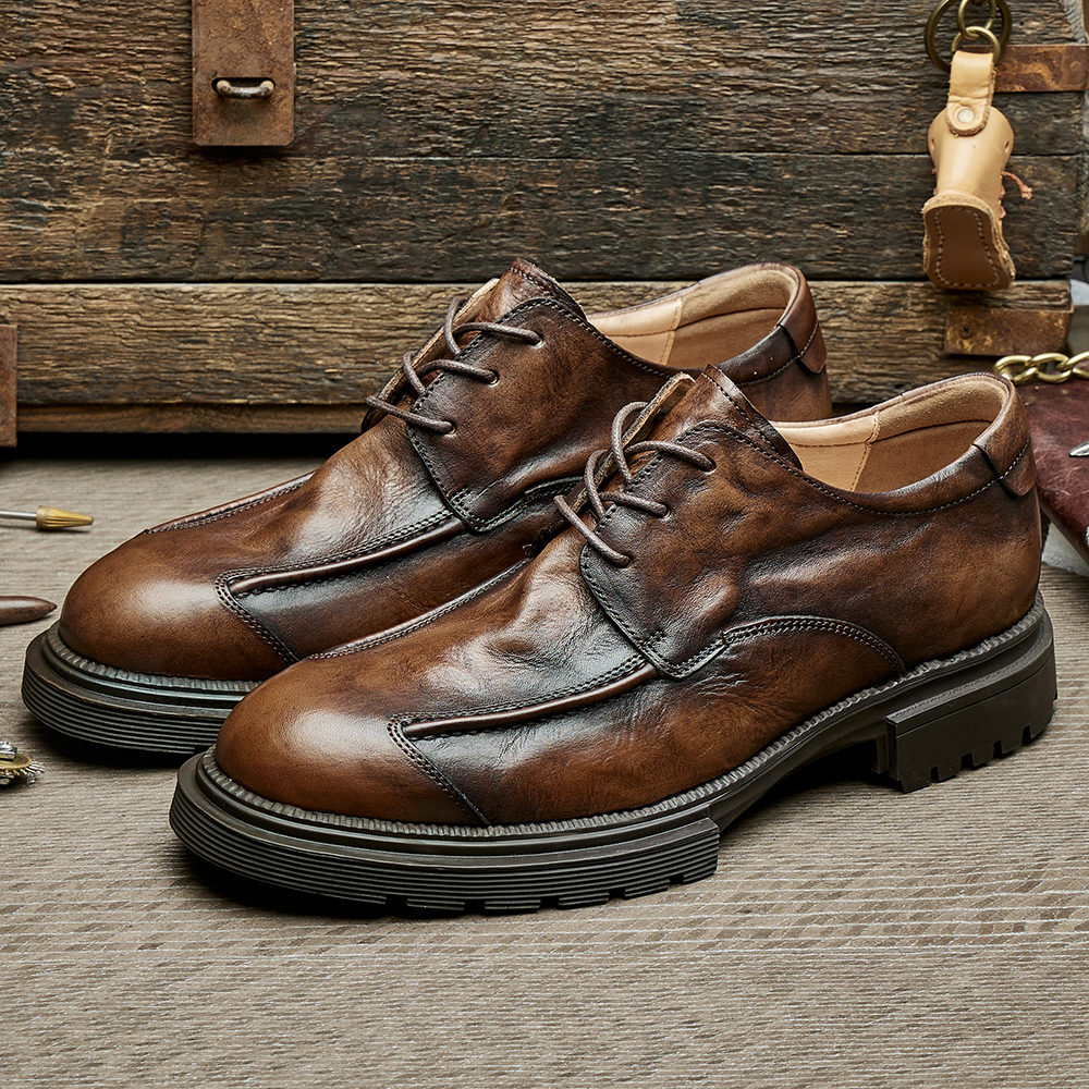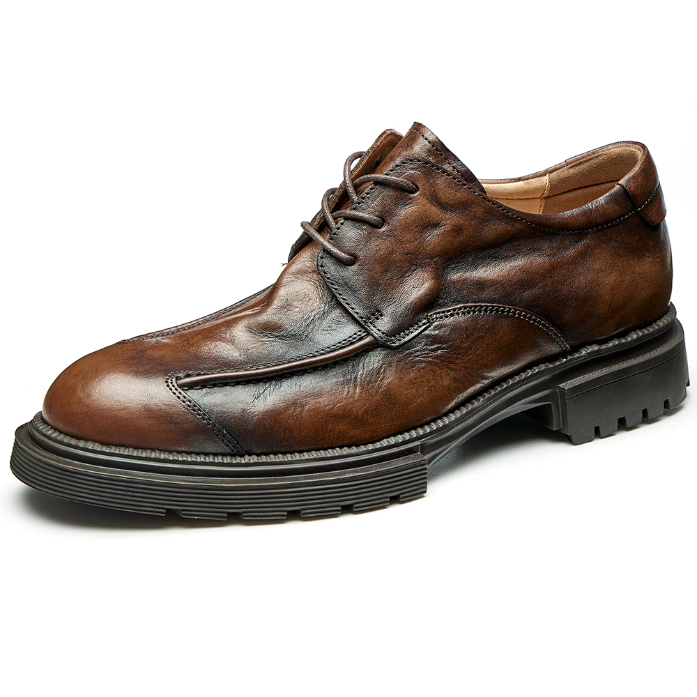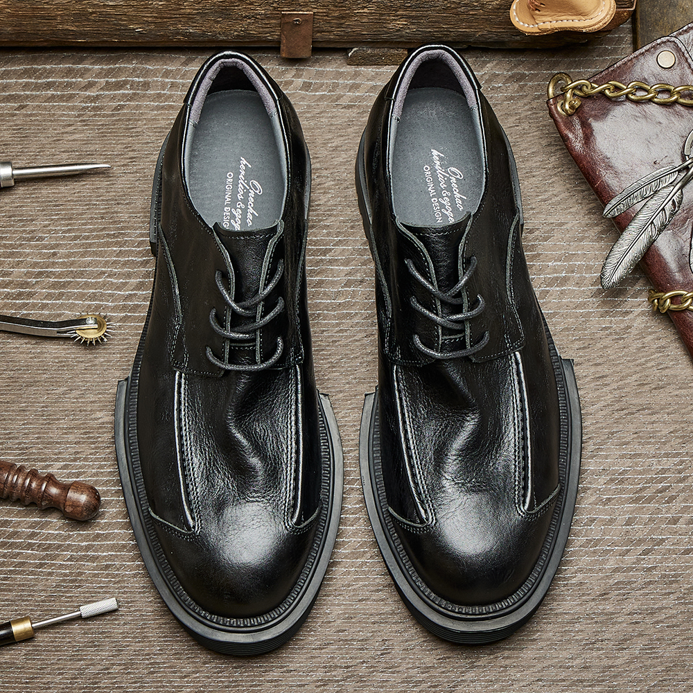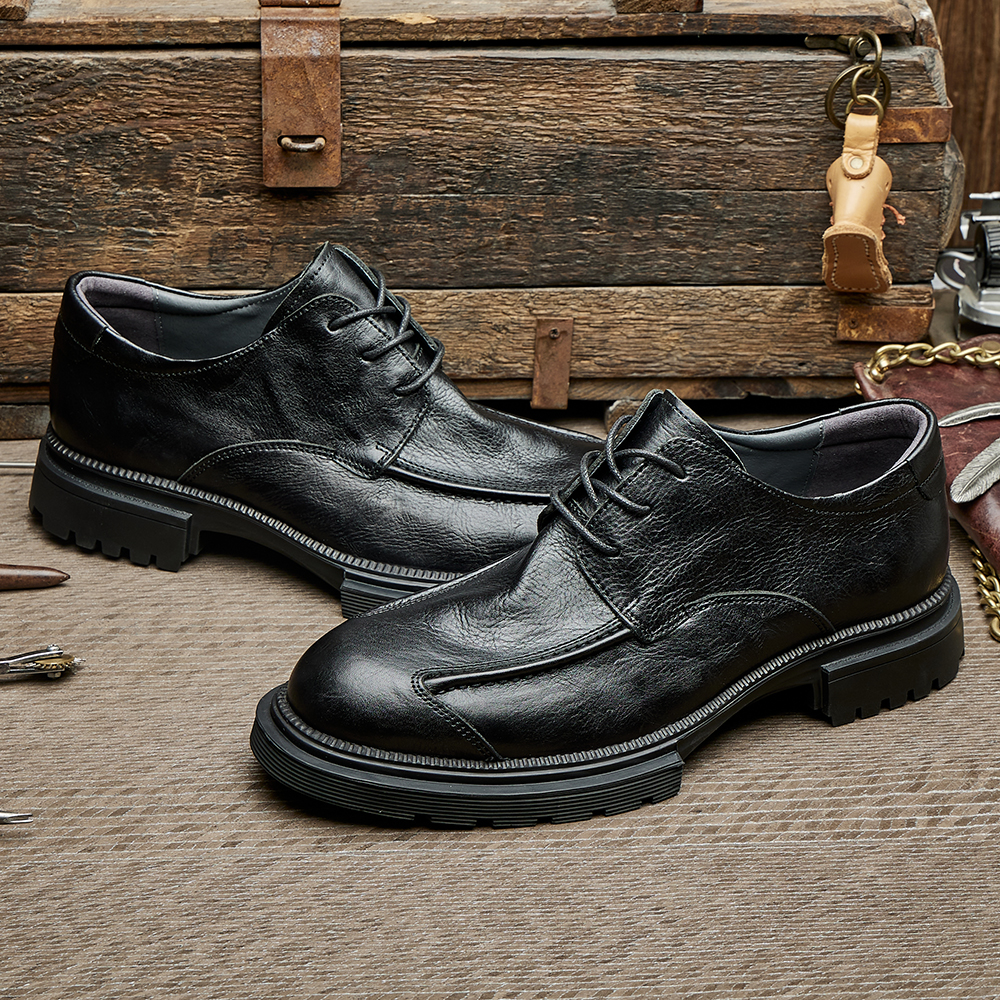 英伦风系带男士男款透气手抓牛皮圆头厚底百搭休闲男皮鞋E89