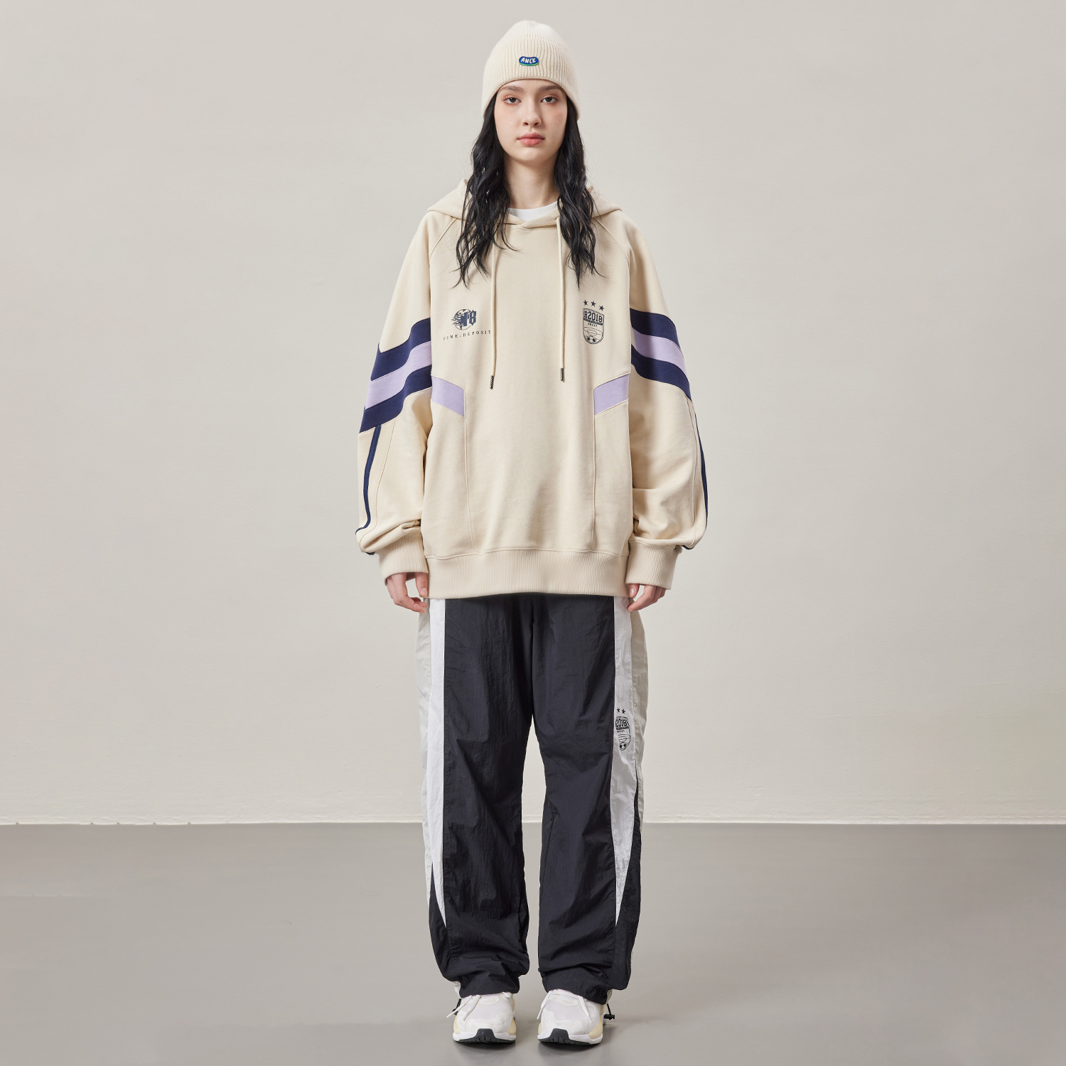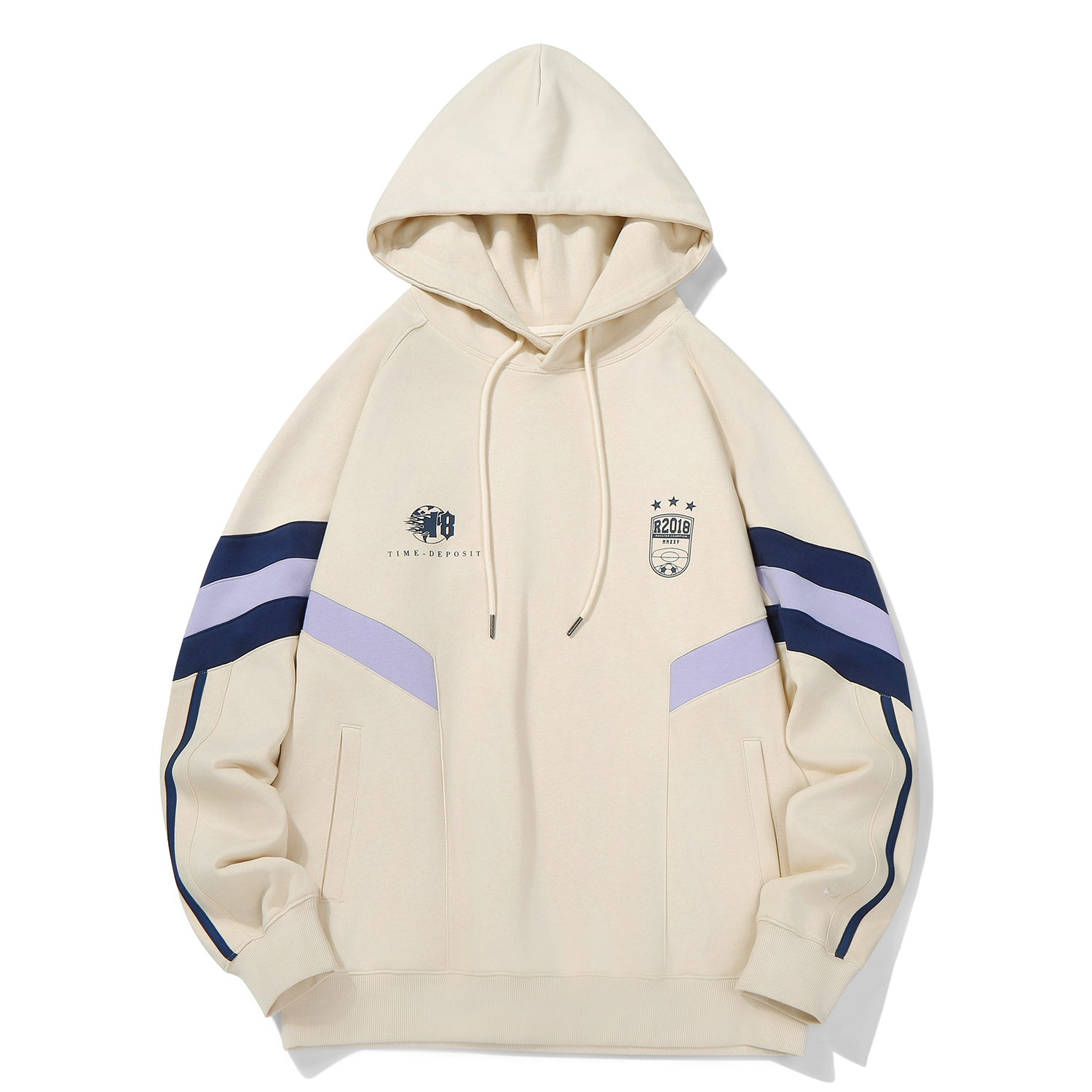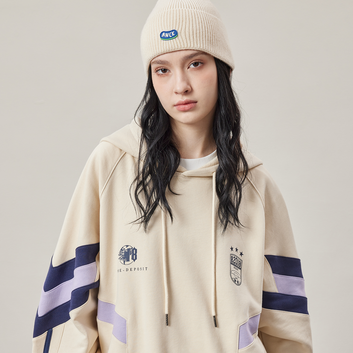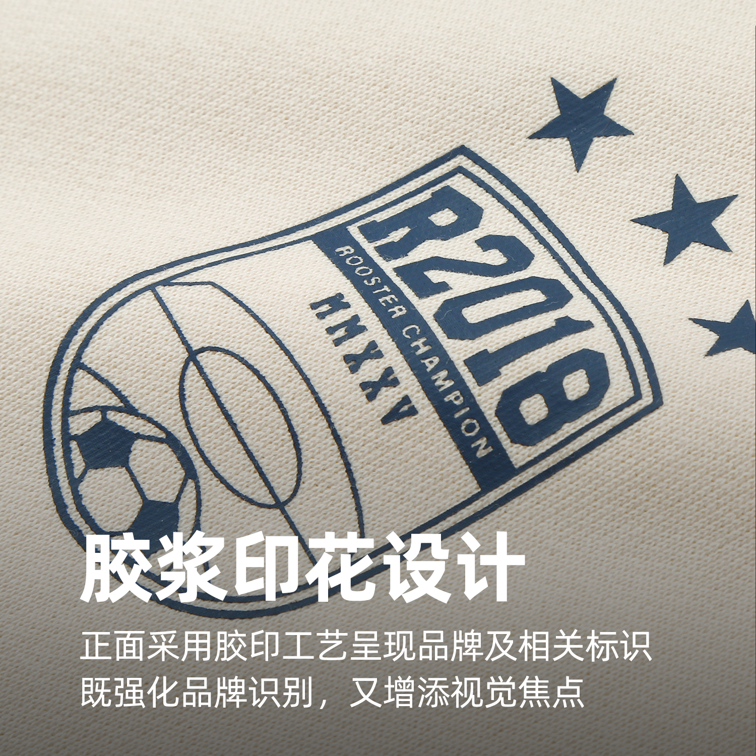 公鸡冠军浅杏色连帽撞色卫衣男秋季宽松印花潮流休闲插肩重磅外套