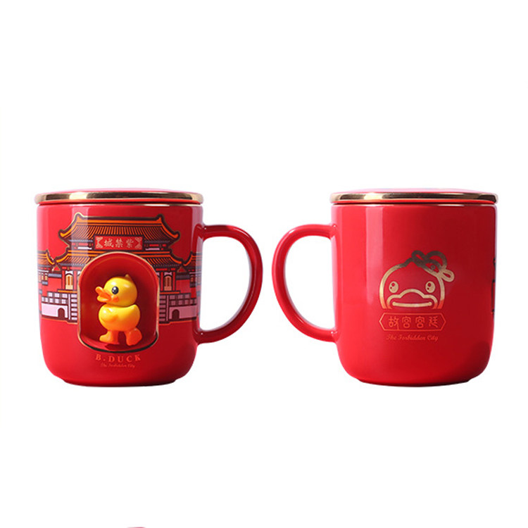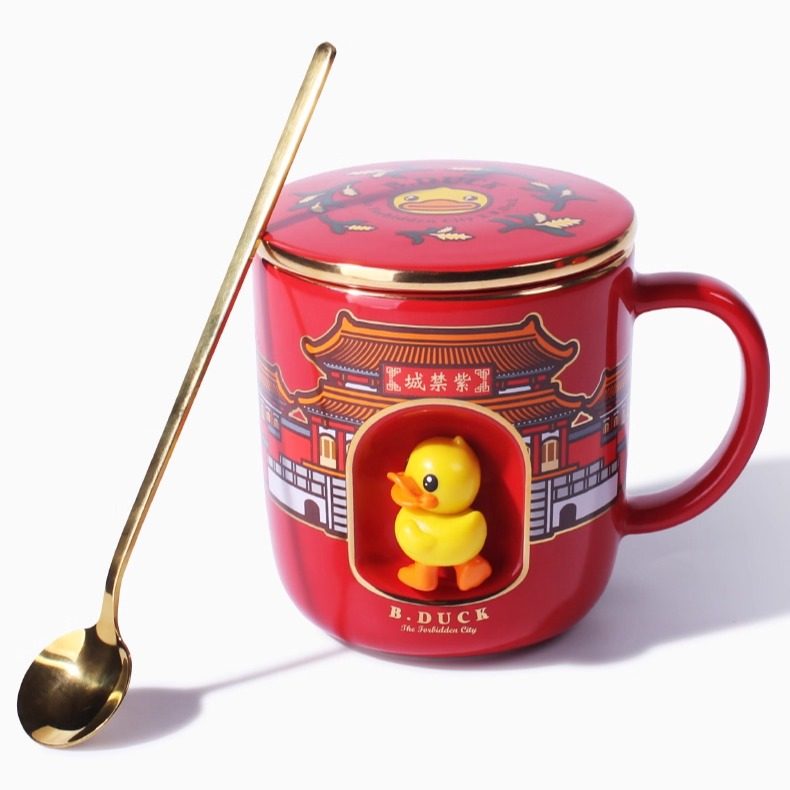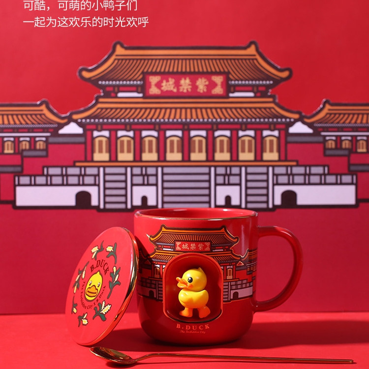 B.Duck小黄鸭故宫宫廷文化创意陶瓷杯礼盒套装可爱带盖带勺马克杯