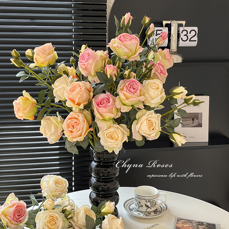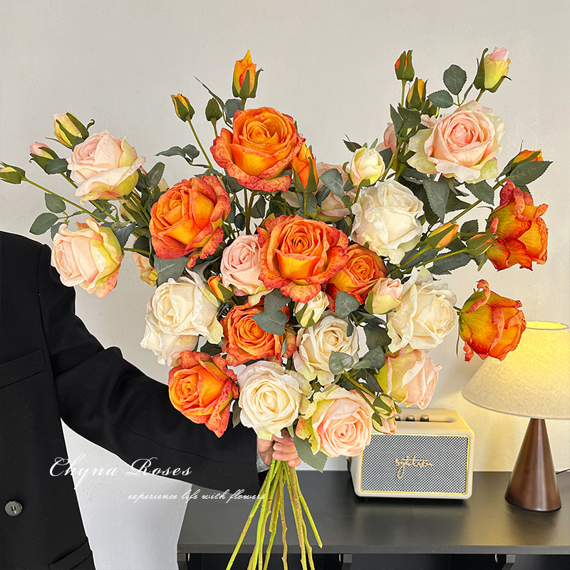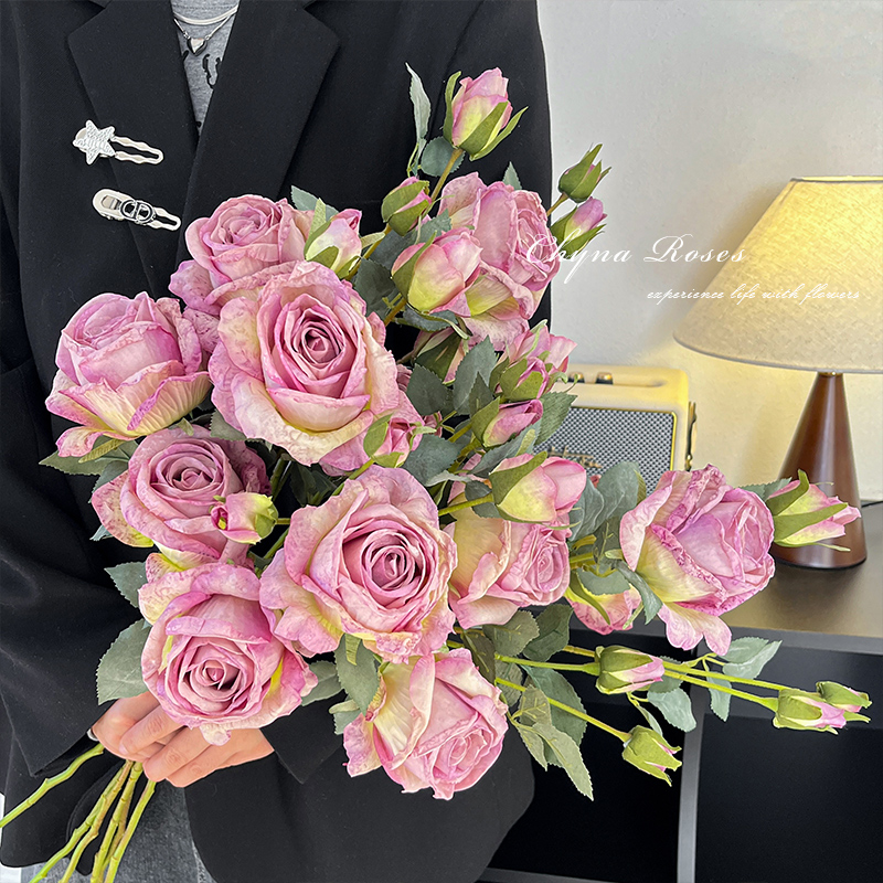 法式复古焦边玫瑰花仿真花摆设手捧花假花花束高级感客厅餐桌花艺