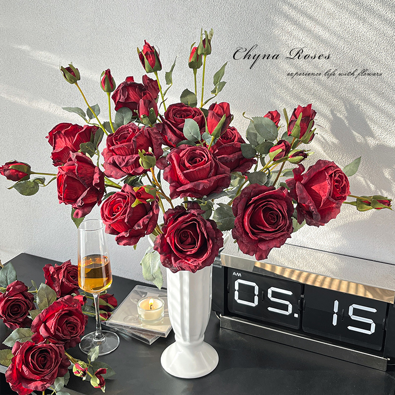 复古焦边玫瑰花仿真花假花摆设