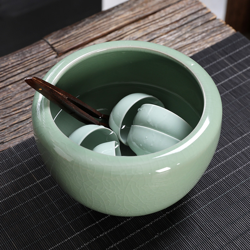 特大号茶渣缸大容量哥窑开片茶洗盆陶瓷建水功夫茶具茶道零配水盂