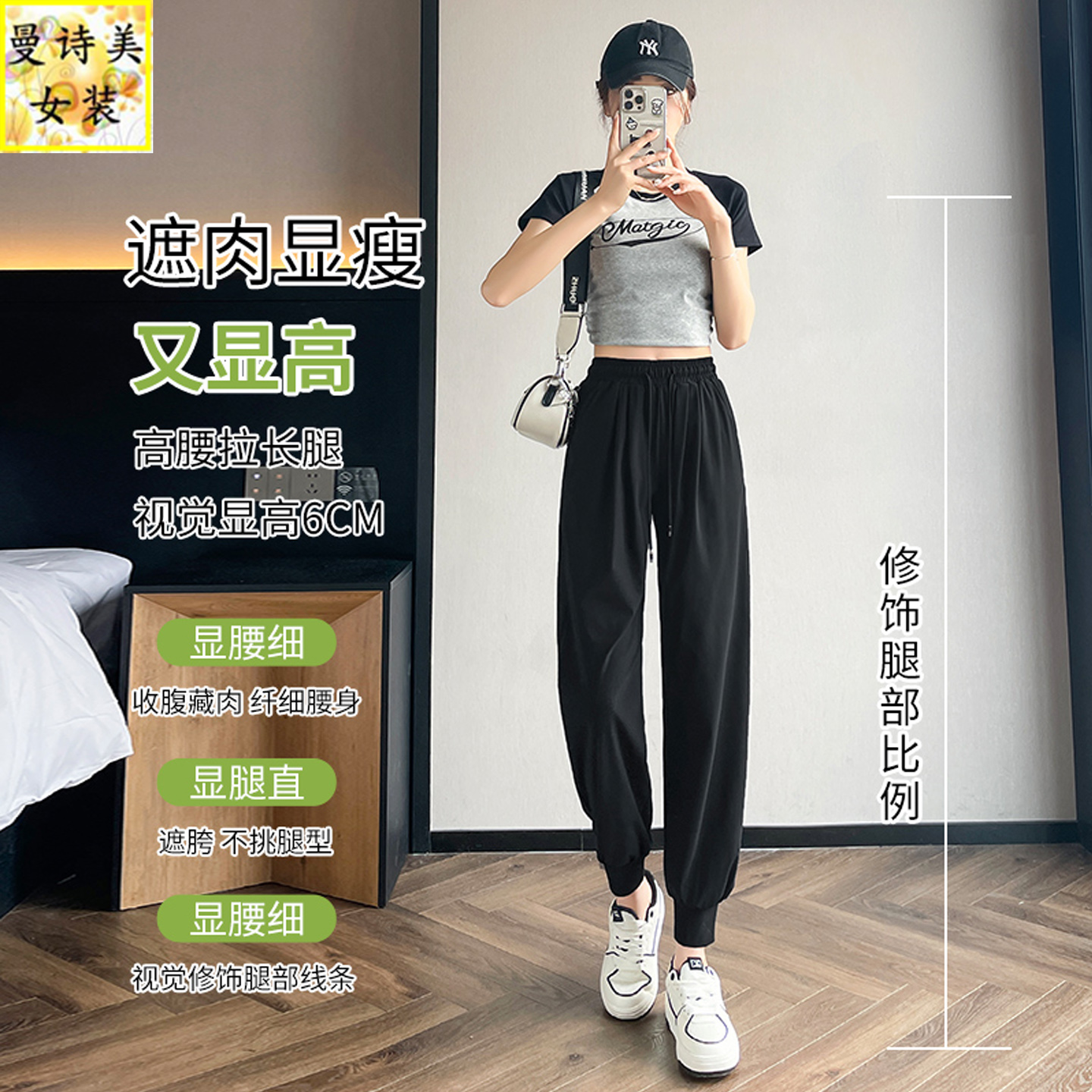 夏天冰丝裤女薄款2025夏季新款束脚九分裤弹力透气哈伦裤大码长裤