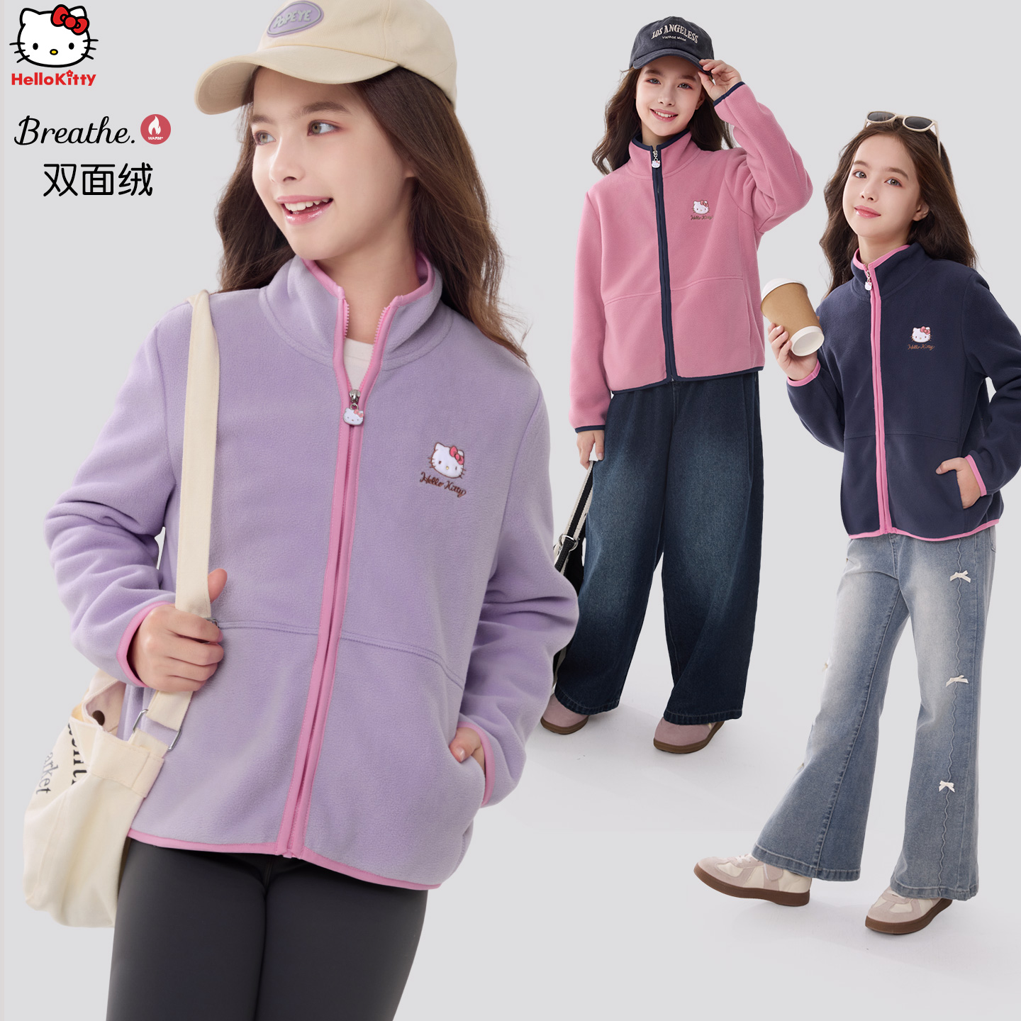 凯蒂猫女童摇粒绒外套秋冬2025新款儿童上衣洋气中大童休闲服童装