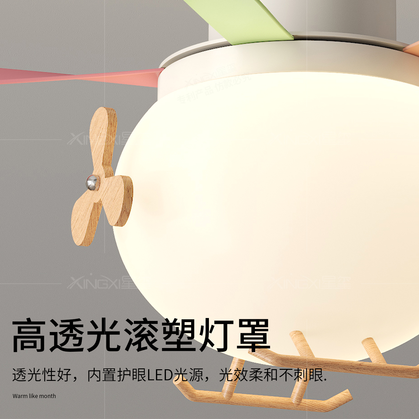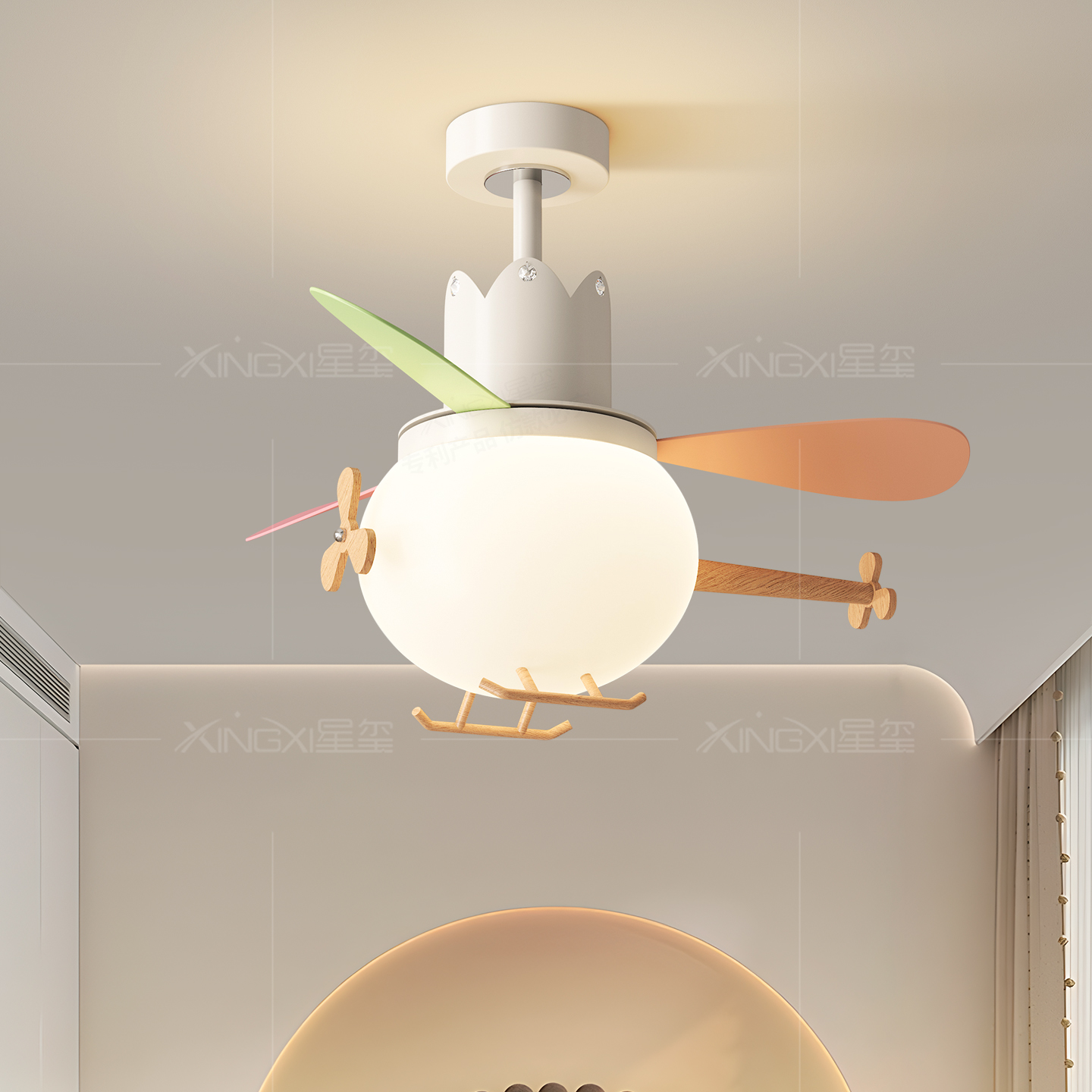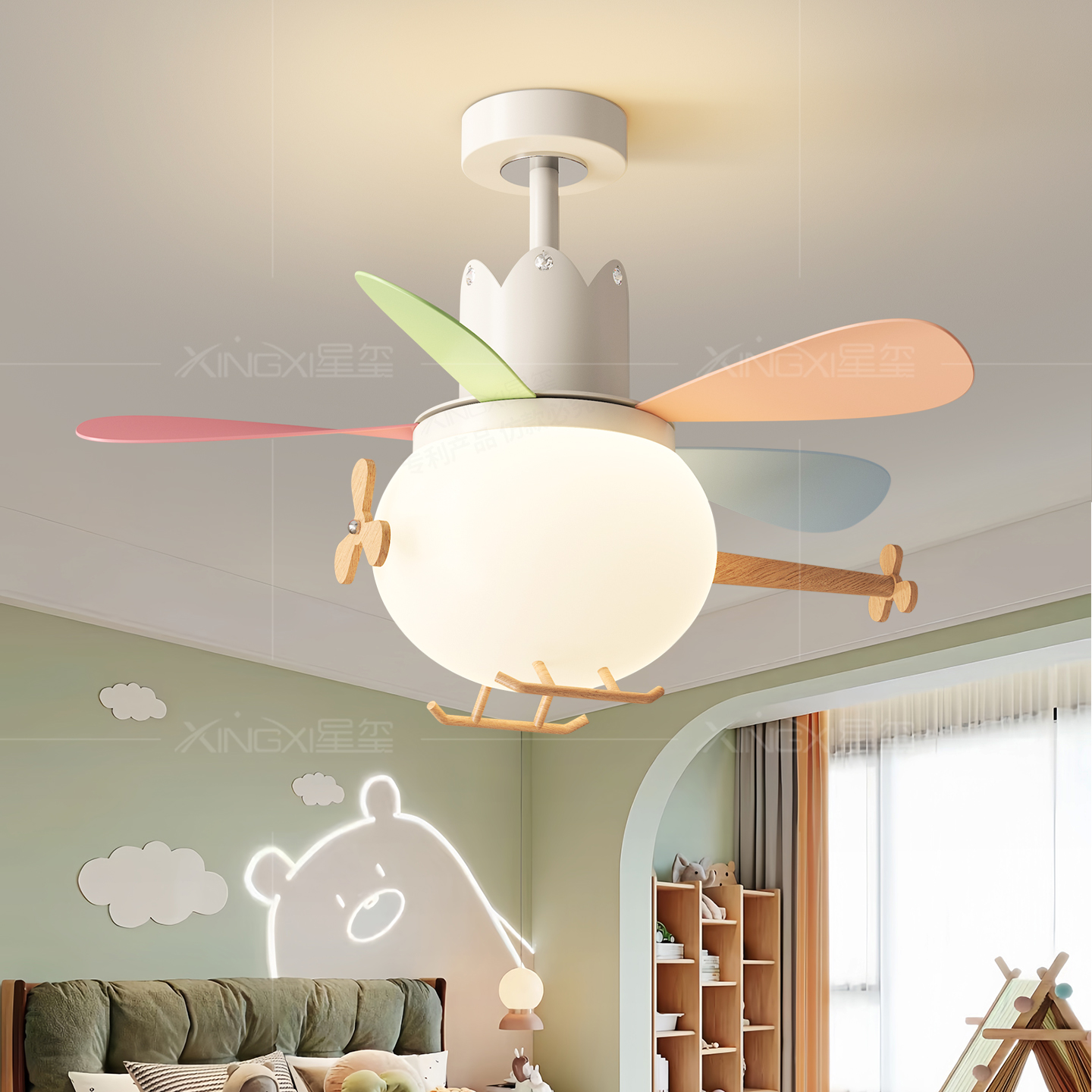 创意马卡龙卡通全光谱静音吊扇灯