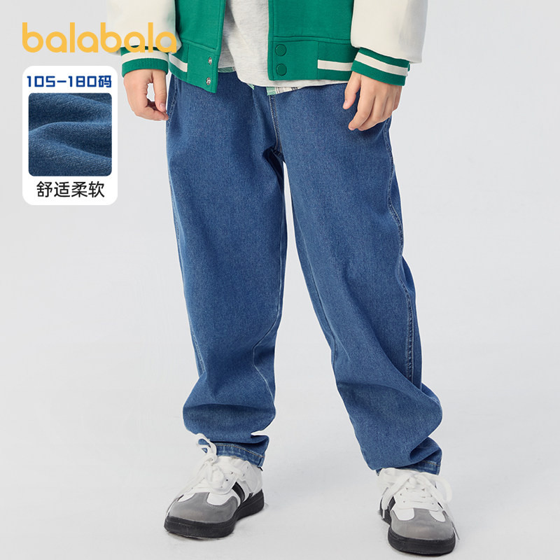 巴拉巴拉男童牛仔裤大童加绒萝卜裤长裤儿童裤子2025冬季新款童装