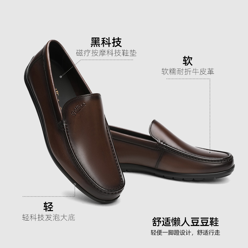 金利来男鞋秋季新款商务休闲舒适软底懒人一脚蹬男士真皮豆豆鞋男