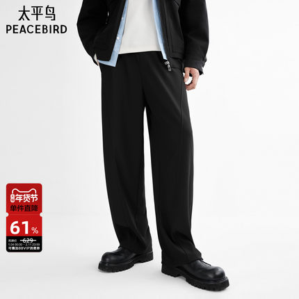 太平鸟男装休闲裤25春新款直筒肌理宽松通勤阔腿百搭休闲西裤潮