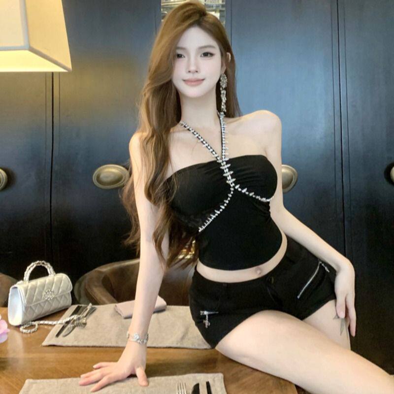 加小码春装女装显高150cmXXXS小个子钉钻挂脖女美背吊带抹胸背心