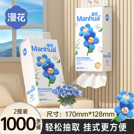 漫花悬挂式抽纸1000张/提小兰花系列面巾纸整箱家用餐巾纸卫生纸
