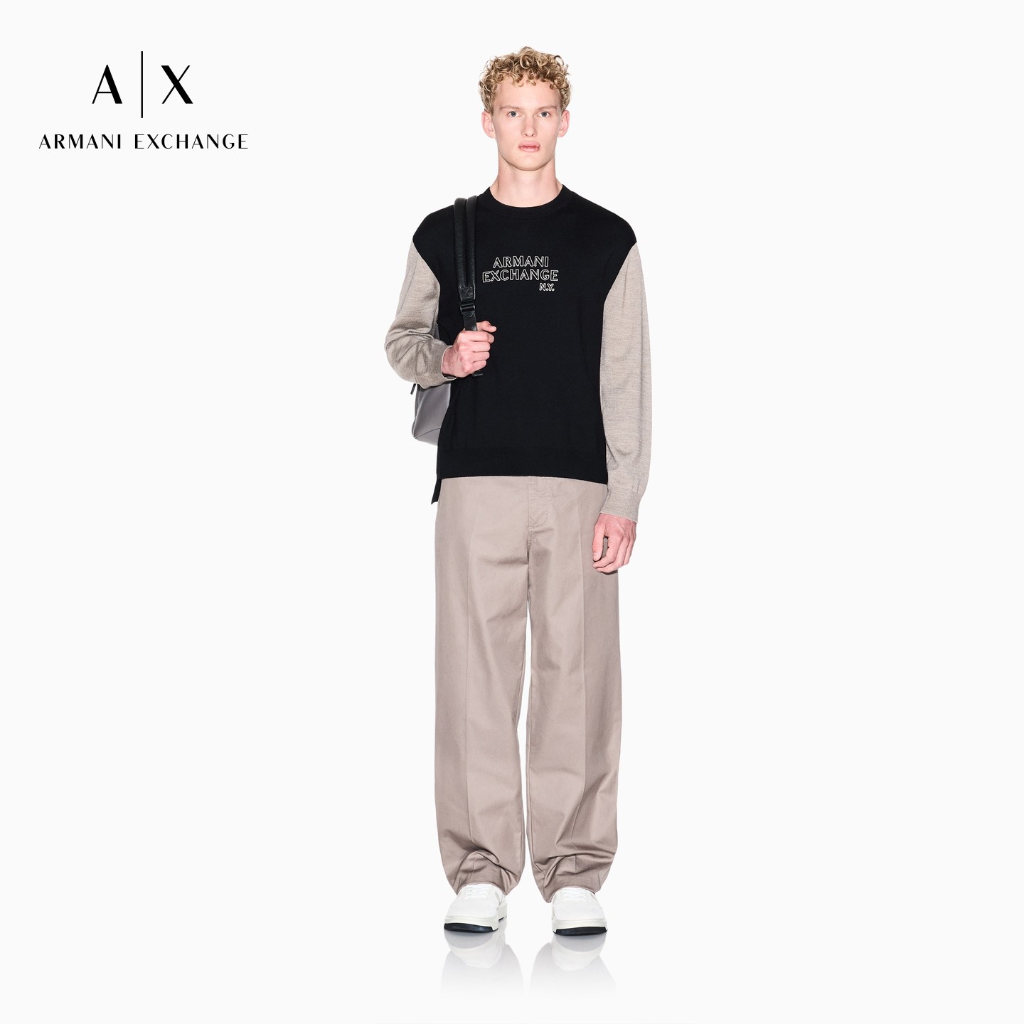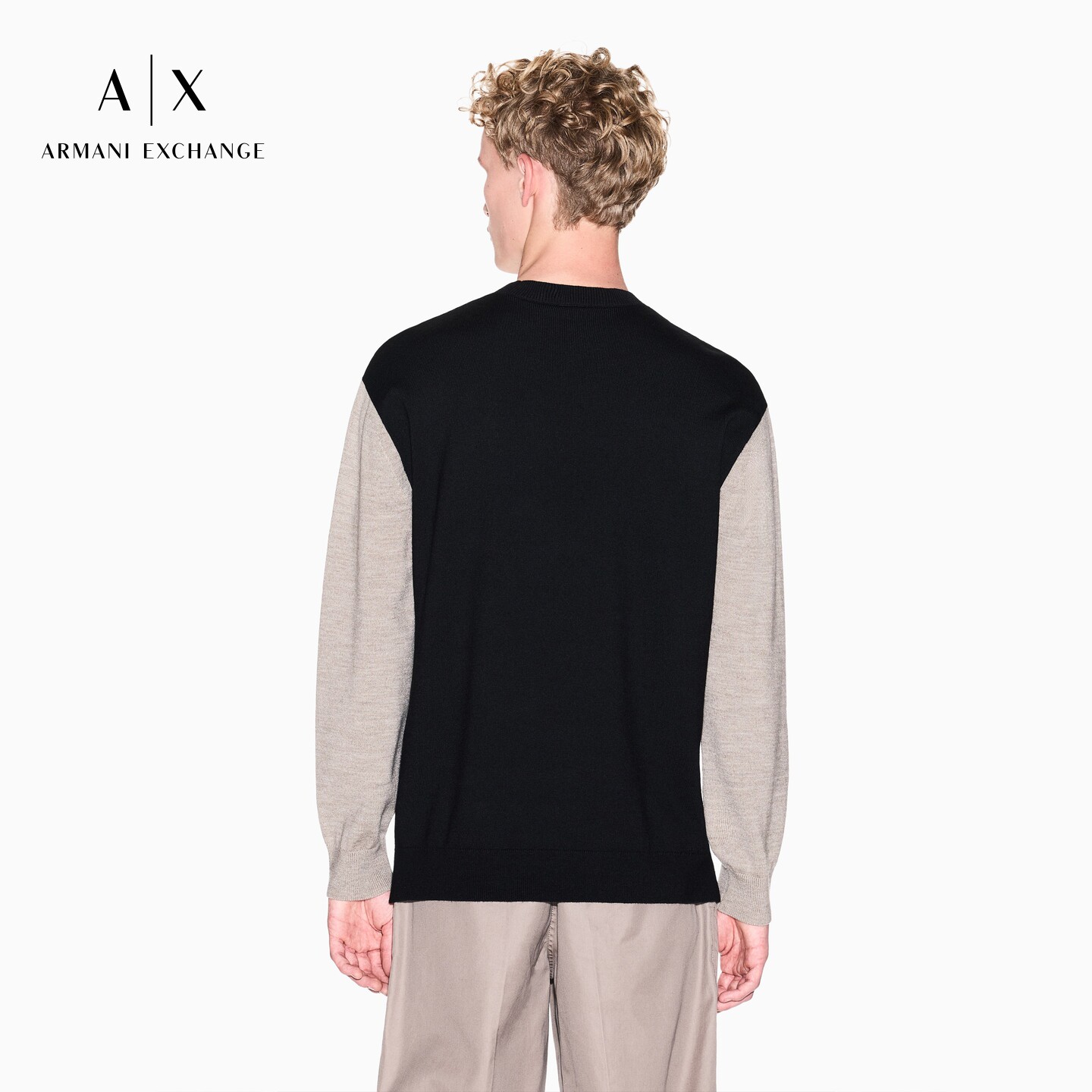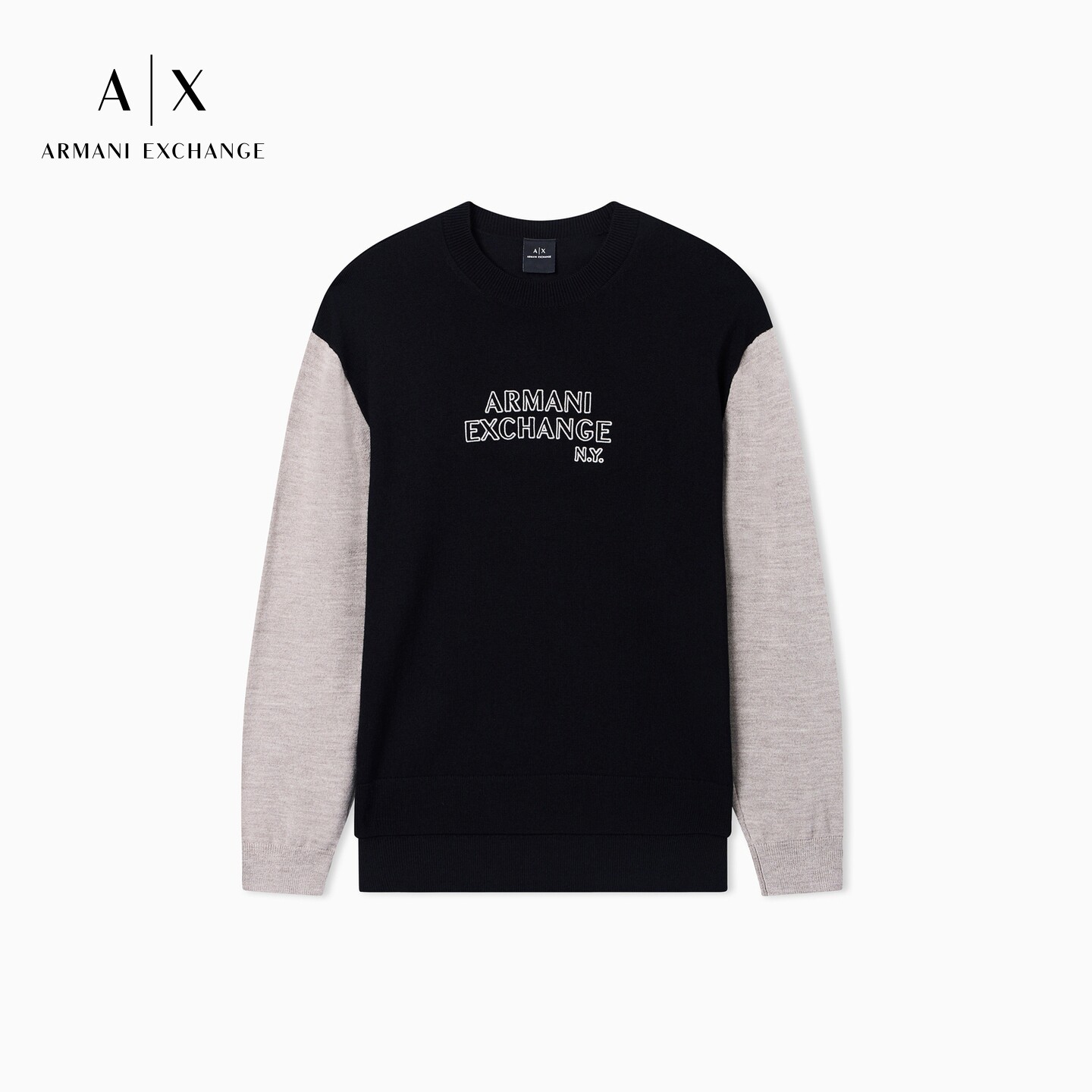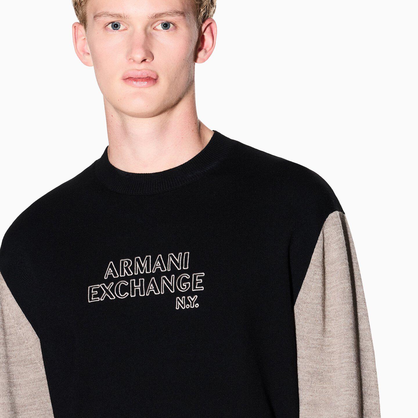 ARMANI EXCHANGE/阿玛尼春季新款男士圆领撞色拼接套头毛衣官方