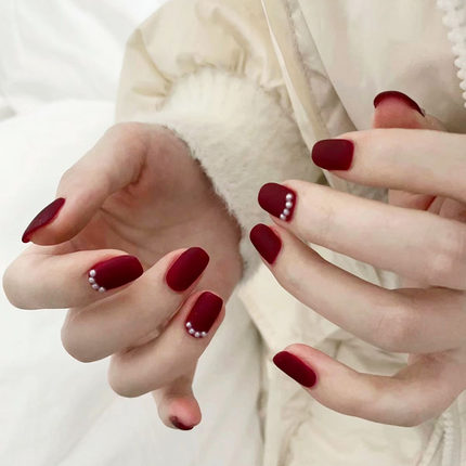 车厘子磨砂珍珠穿戴甲节日常简约百搭显白高级感新年短款美甲贴片