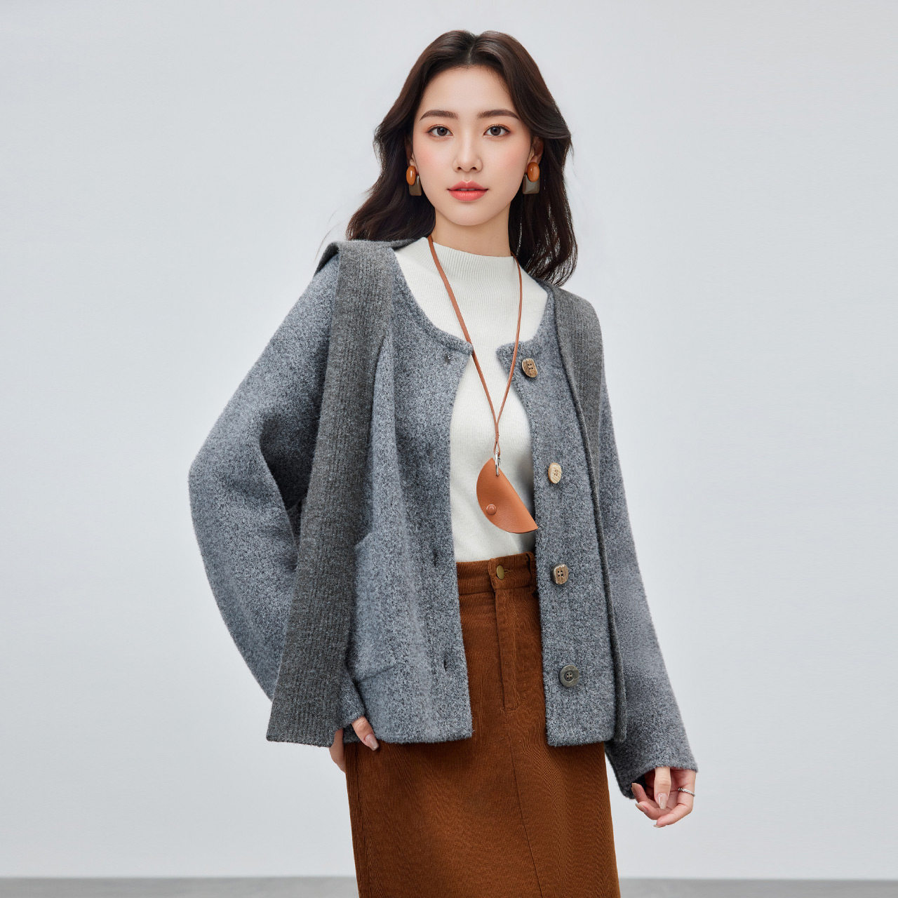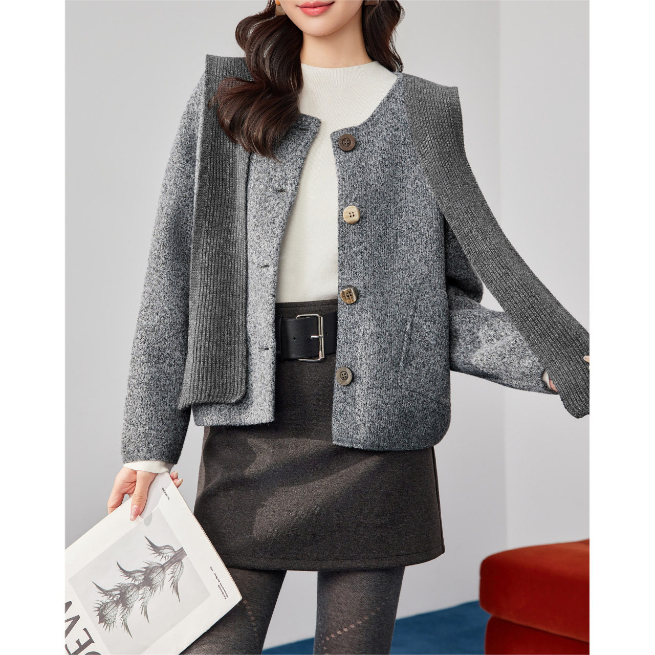 IEF/爱依服2025秋冬新款法式文艺知性通勤气质设计感百搭毛织外套