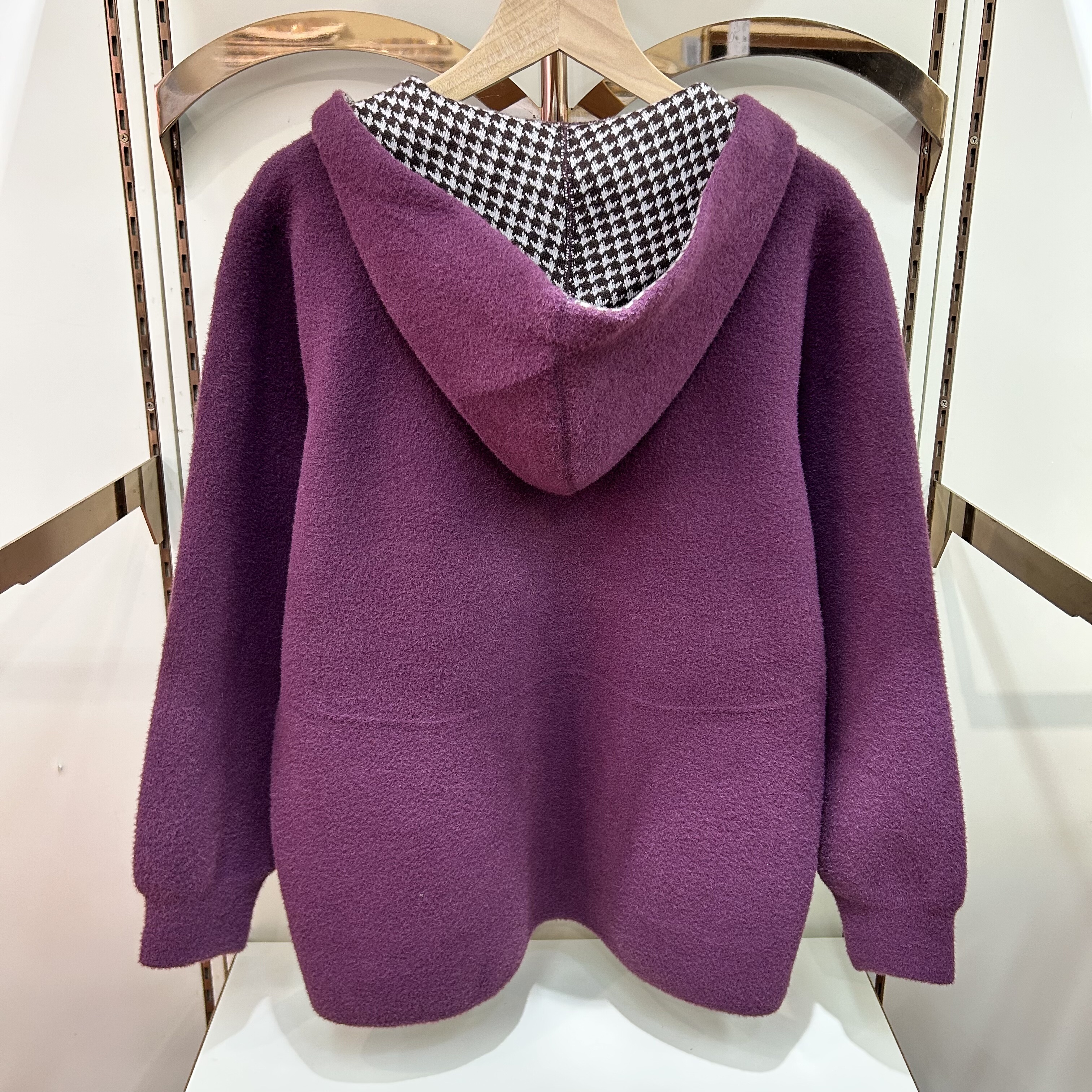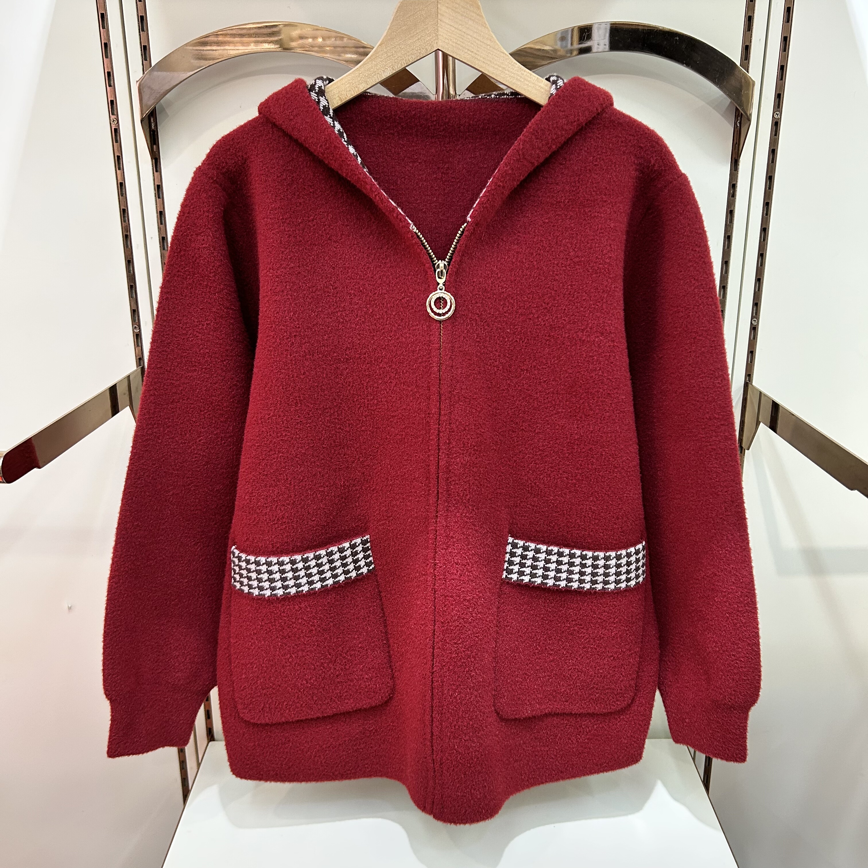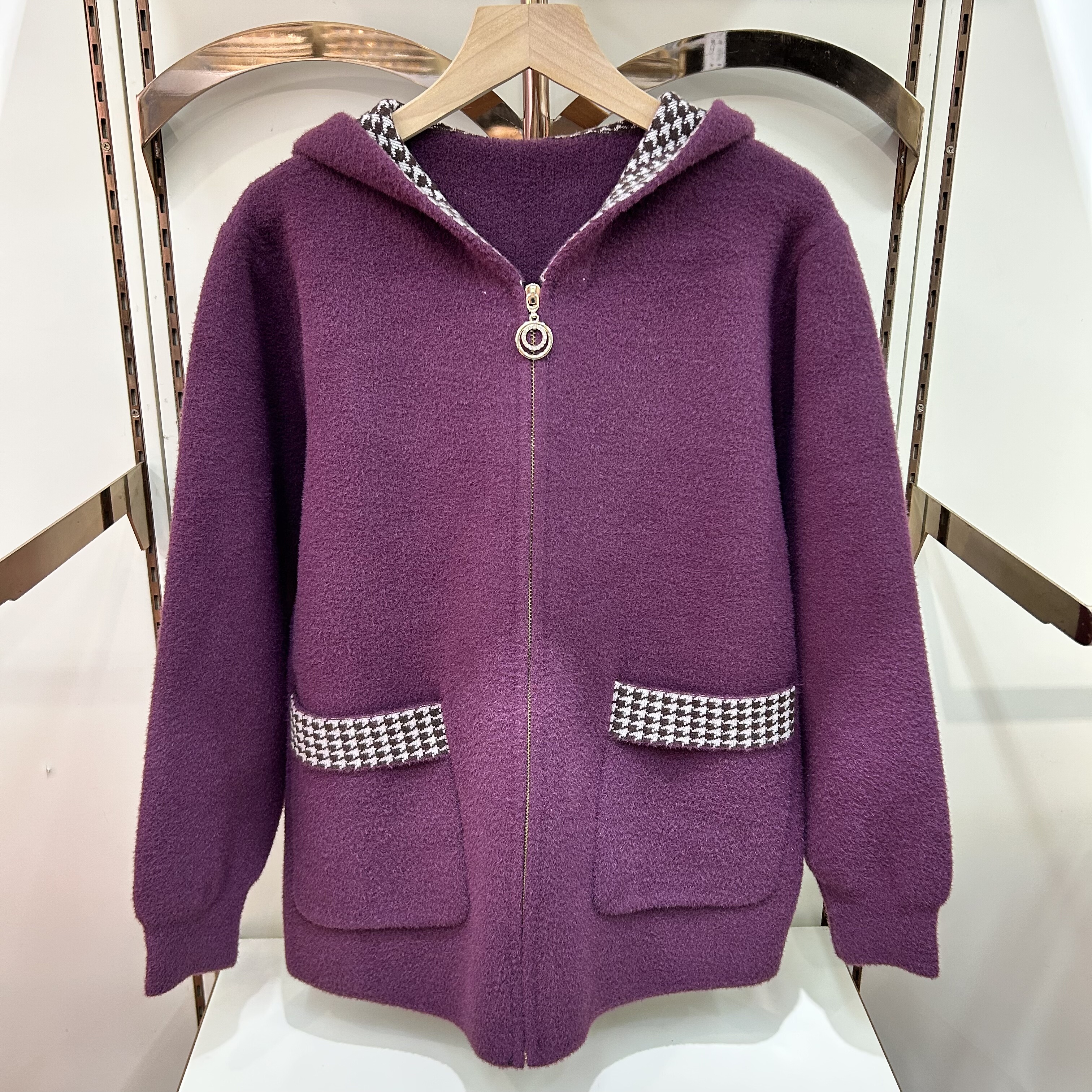 中老年妈妈秋装针织开衫连帽外套中老年女士秋冬洋气大码上衣女
