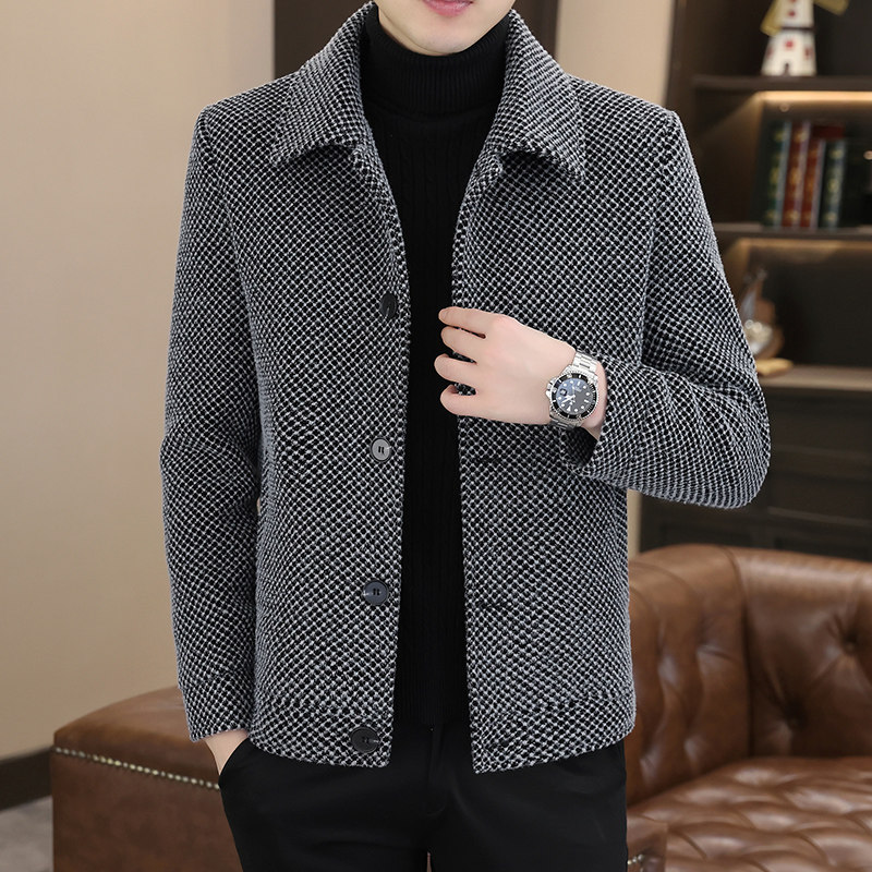 秋冬季外套男士毛呢大衣短款翻领呢子青年男装冬款休闲加厚夹克男