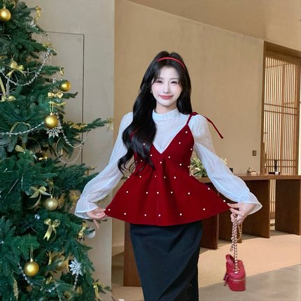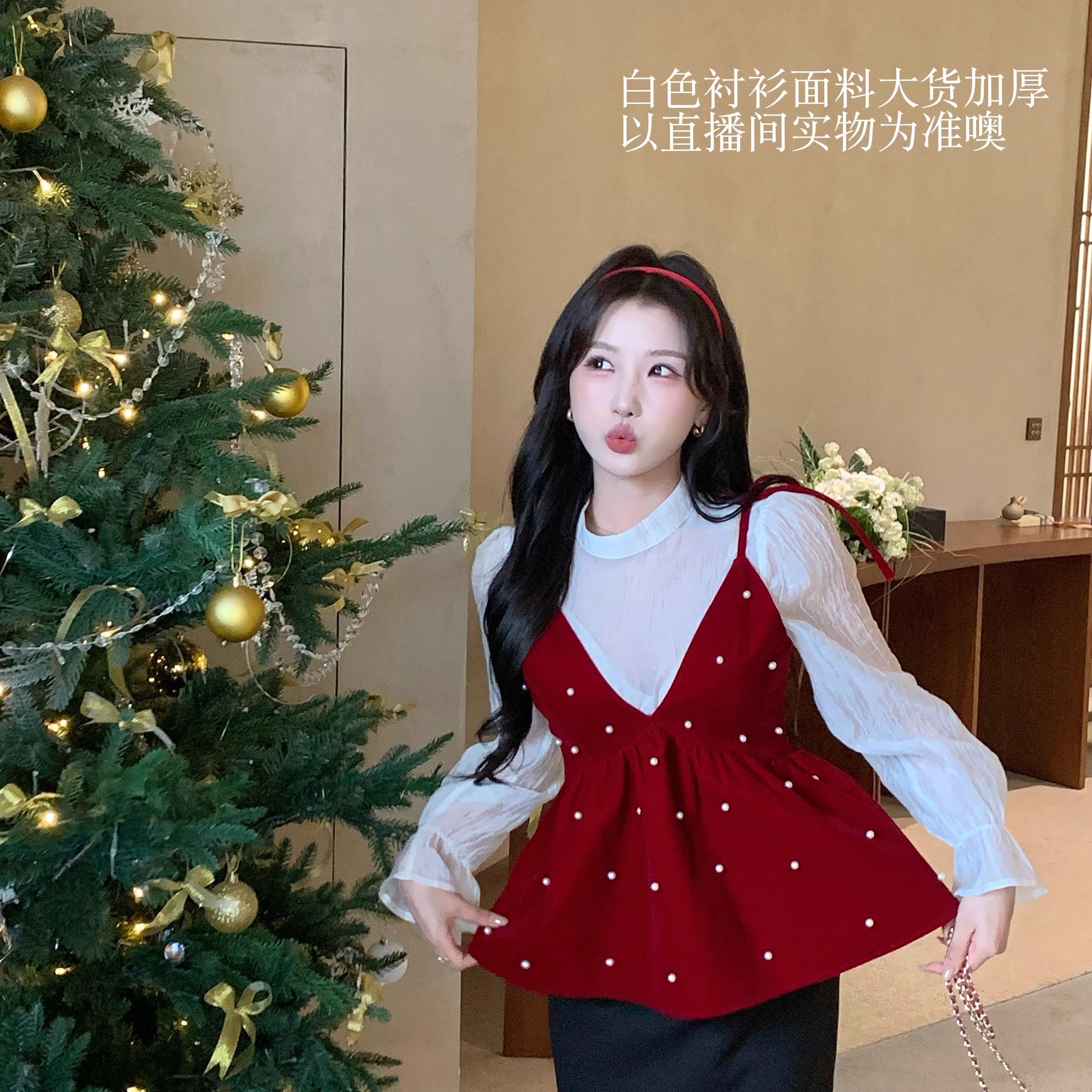 陈六六CHENLIULIU【节日气氛】必入款新年氛围衬衫丝绒吊带两件套