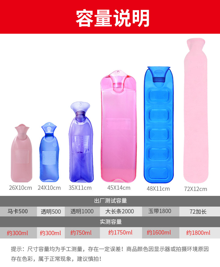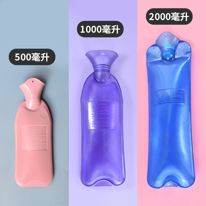 加厚PVC热水袋注水小号长条500ml装水随身迷你暖水袋暖手宝毛绒套