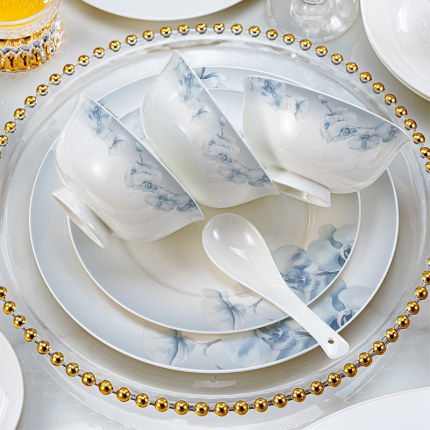 景德镇餐具套装釉下彩轻奢高颜值易清洗碗盘乔迁中秋送礼碗碟家用