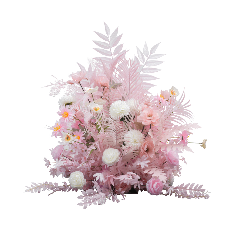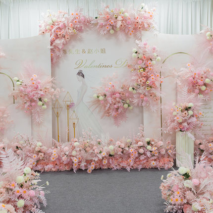 粉色婚庆花艺 婚礼舞台背景现场布置排花挂花路引花拱门t台装饰花