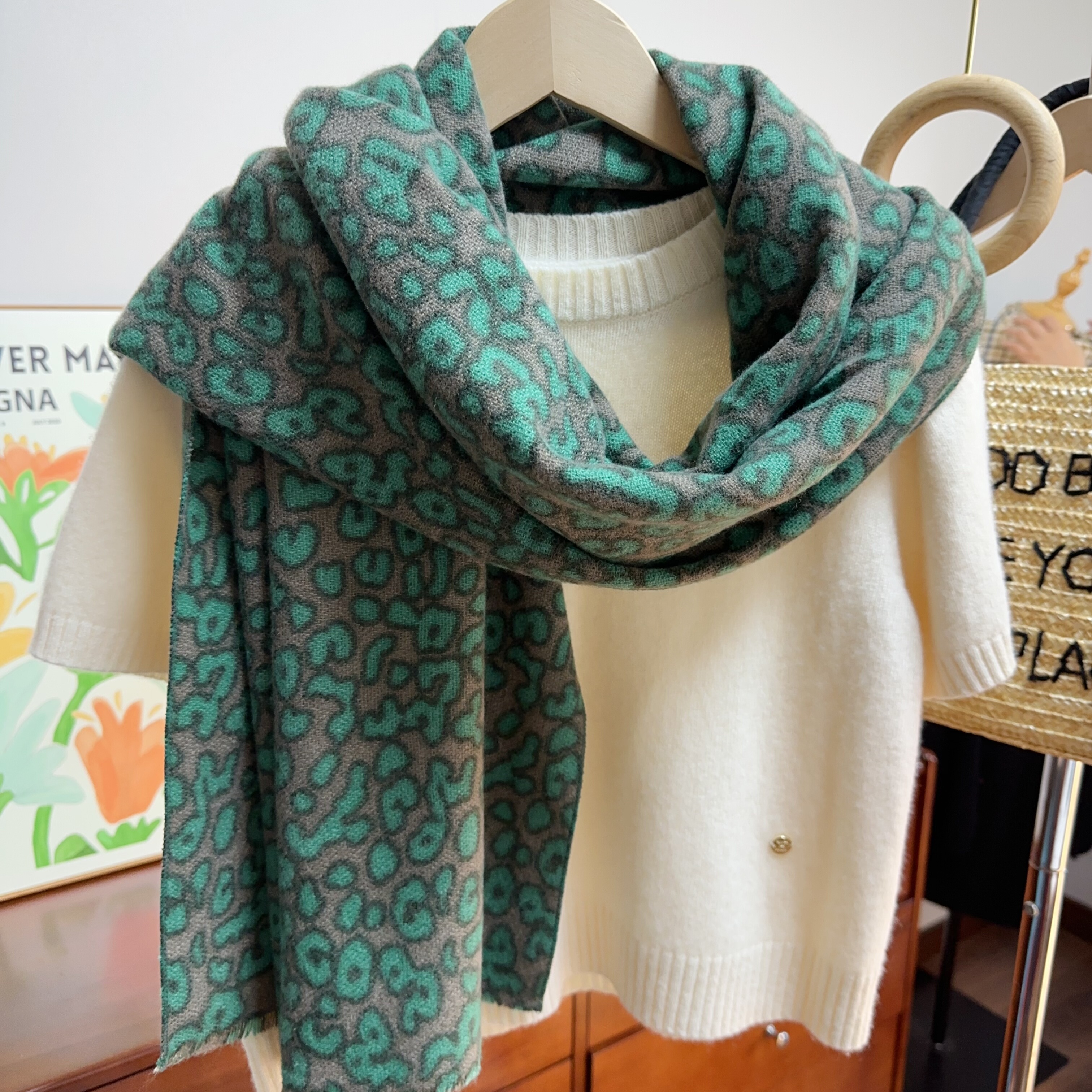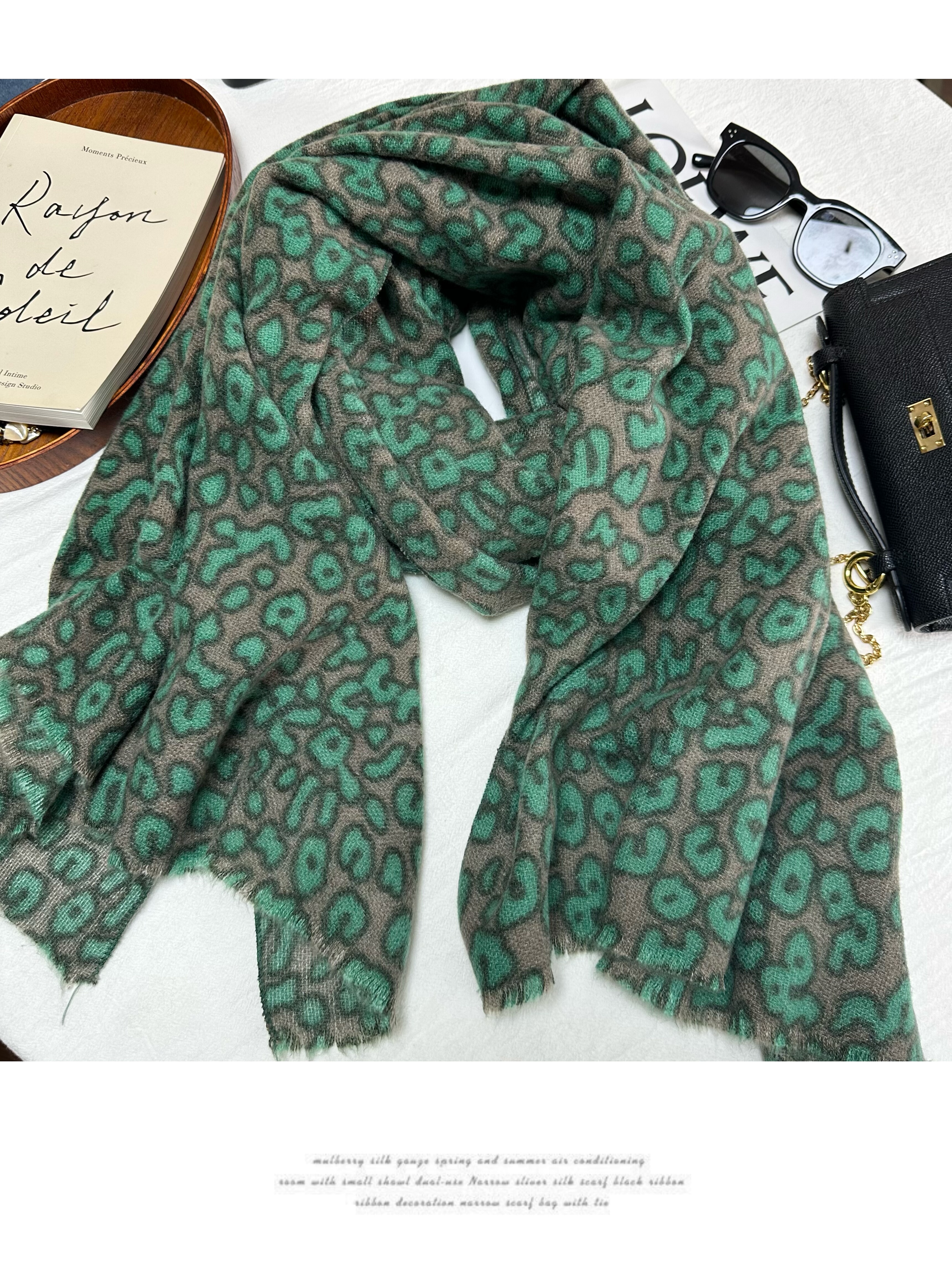 牛油果绿色豹纹围巾!外搭披肩斗篷披风两用女秋冬季盖毯保暖围脖