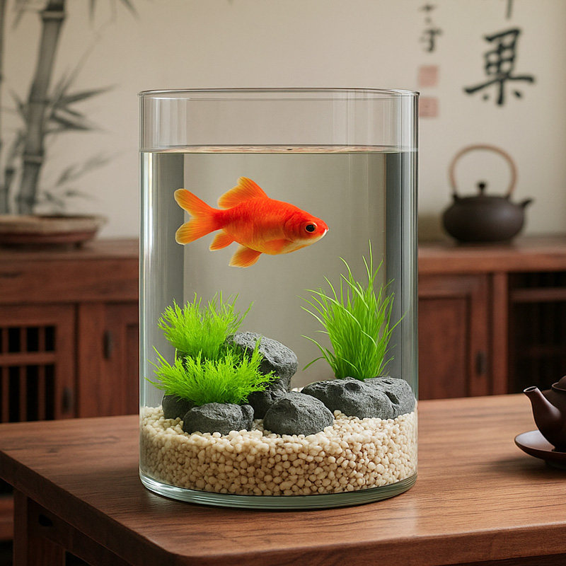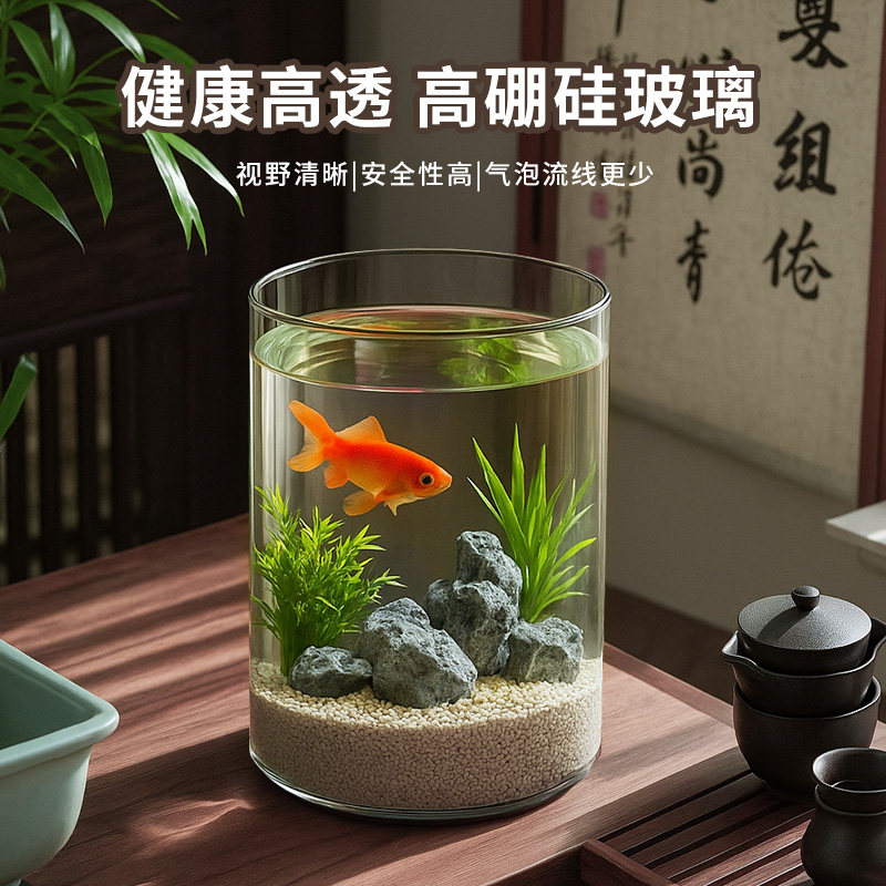创意玻璃金鱼缸客厅水族箱小型生态圆形圆柱大号乌龟缸造景培装饰