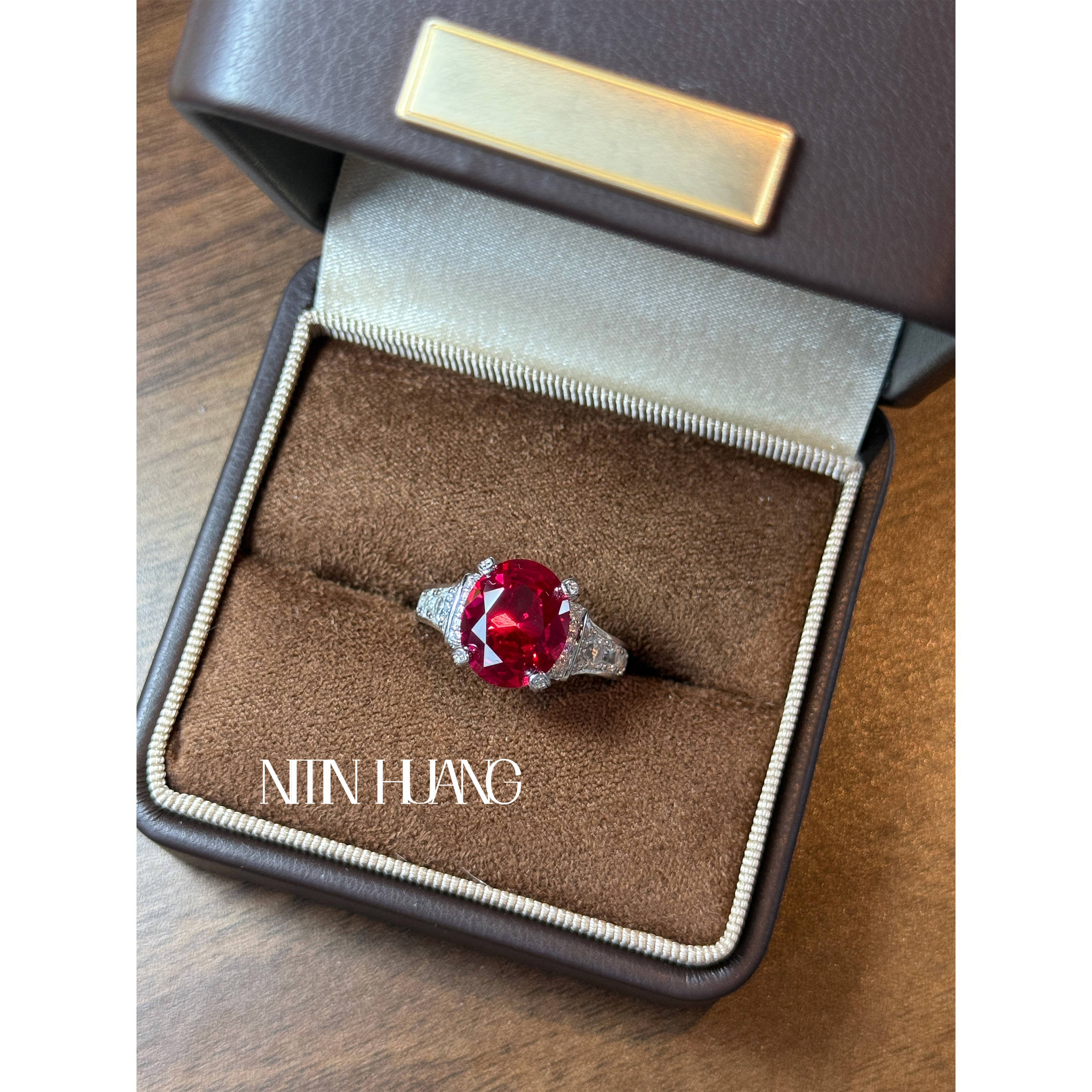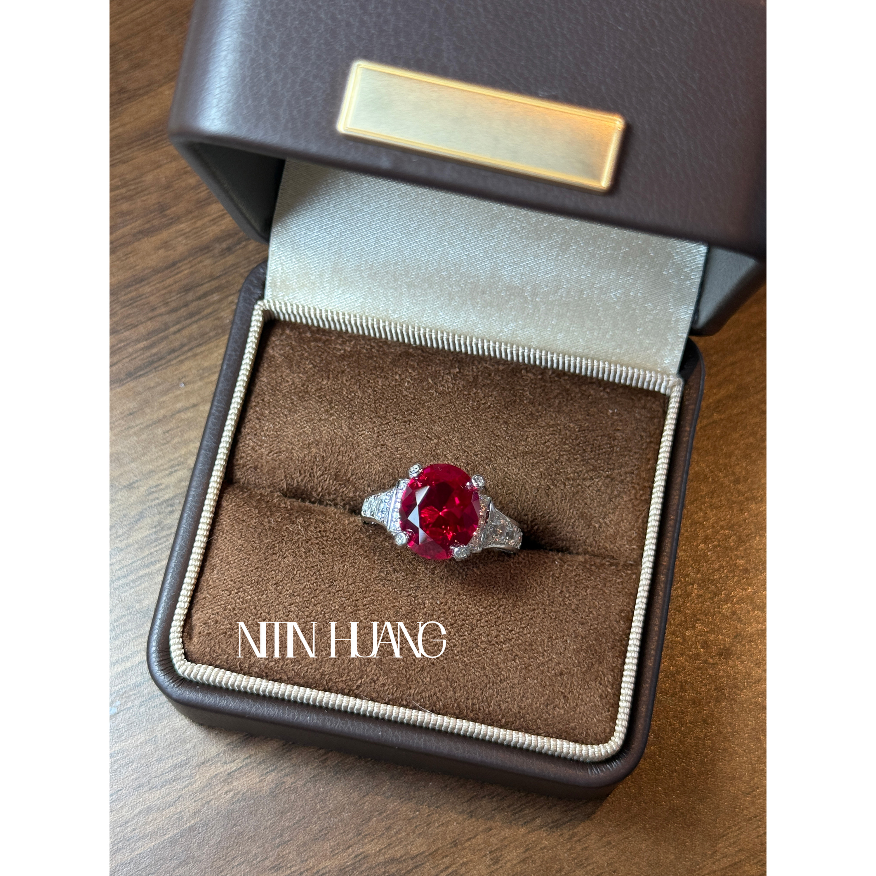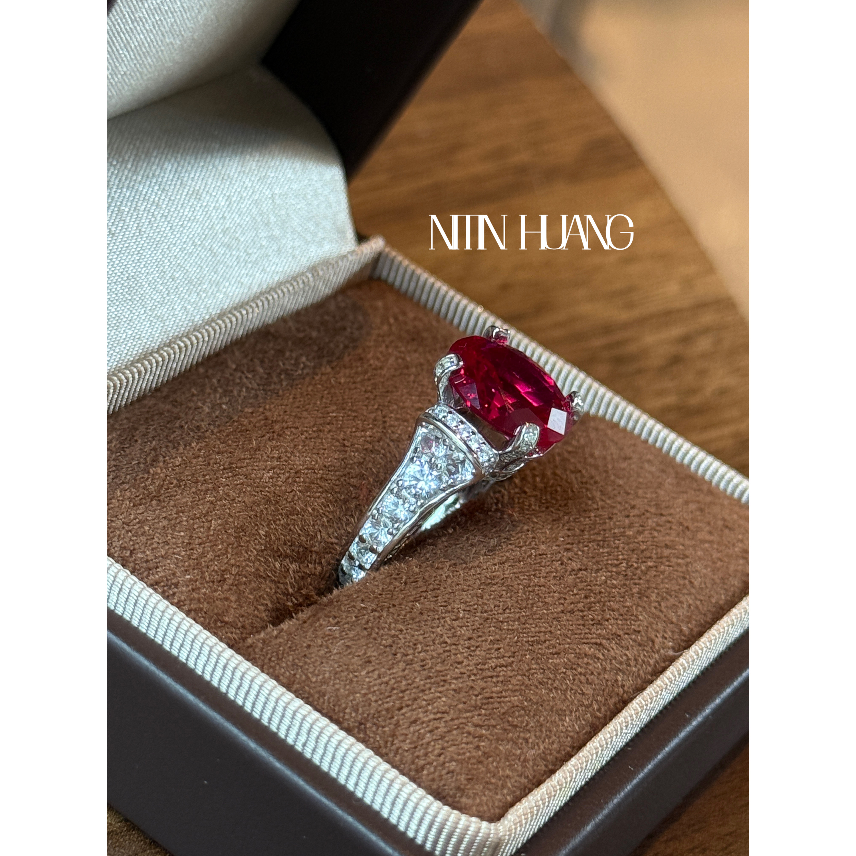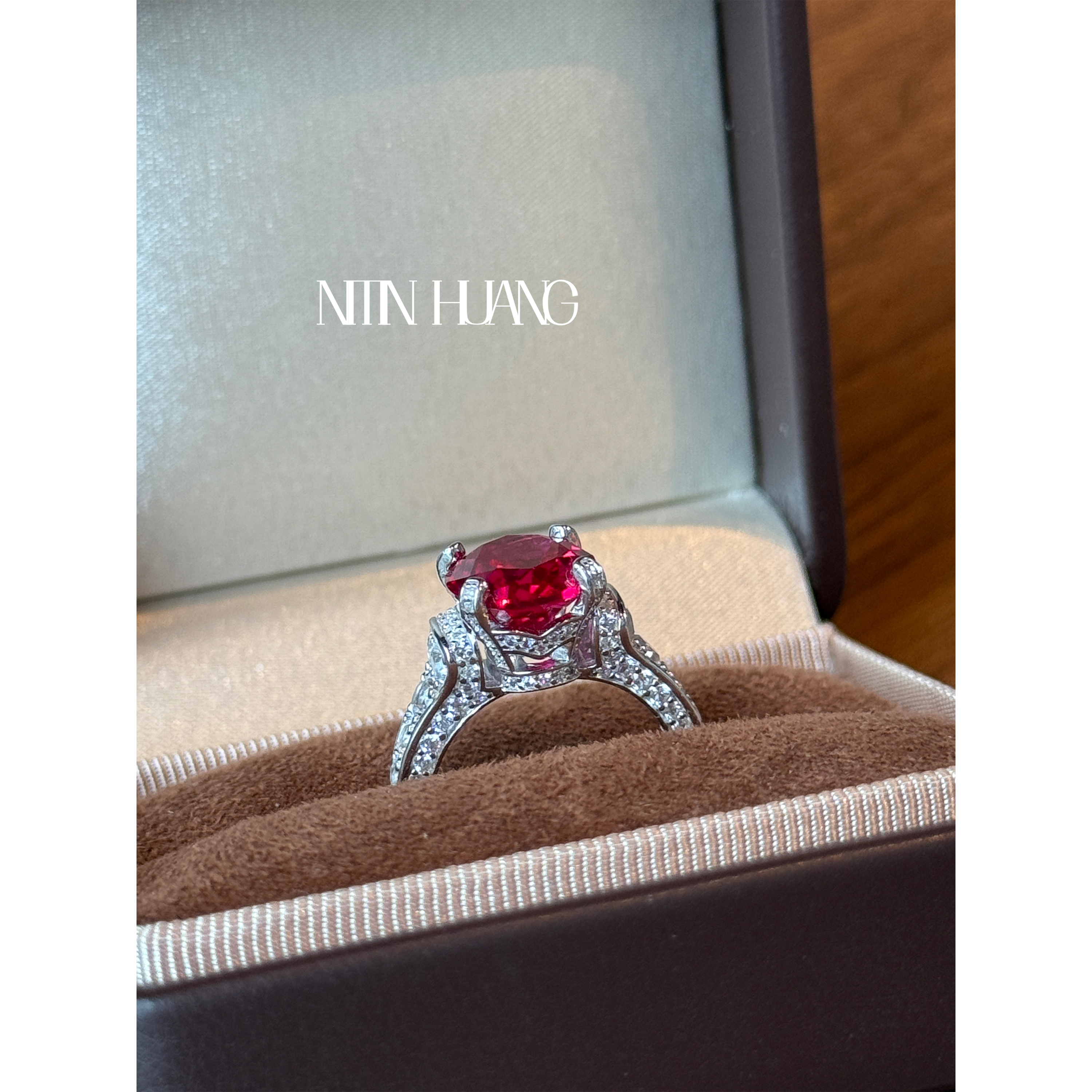 NITIN HUANG 5.5克拉培育鸽血红宝石戒指 满钻戒臂男女可戴轻奢