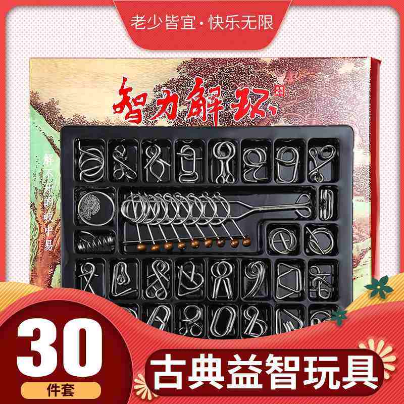 智力解环30件套九连环锁益智智力鲁班锁孔明解扣玩具解压玩具