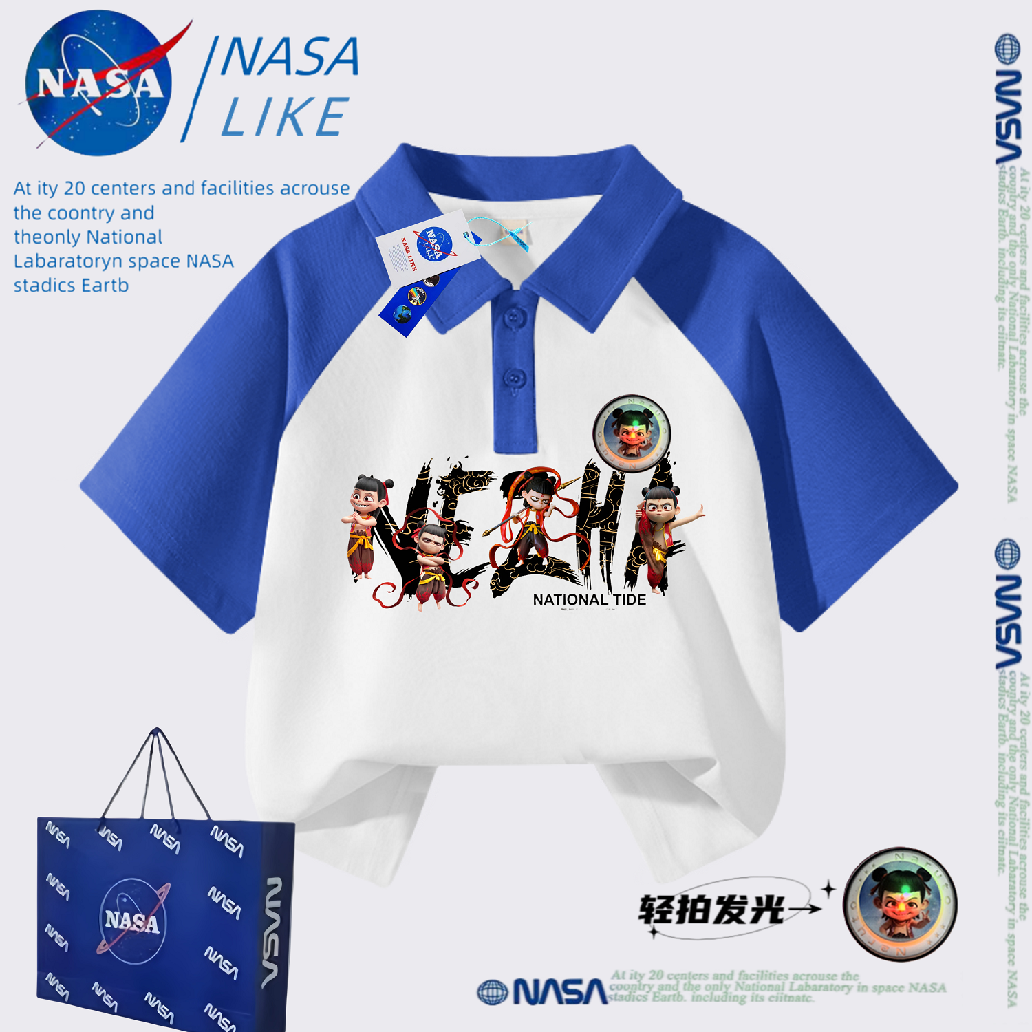 NASA儿童新款哪咤可发光春夏季纯棉短袖宽松体恤POLO衫上衣潮酷