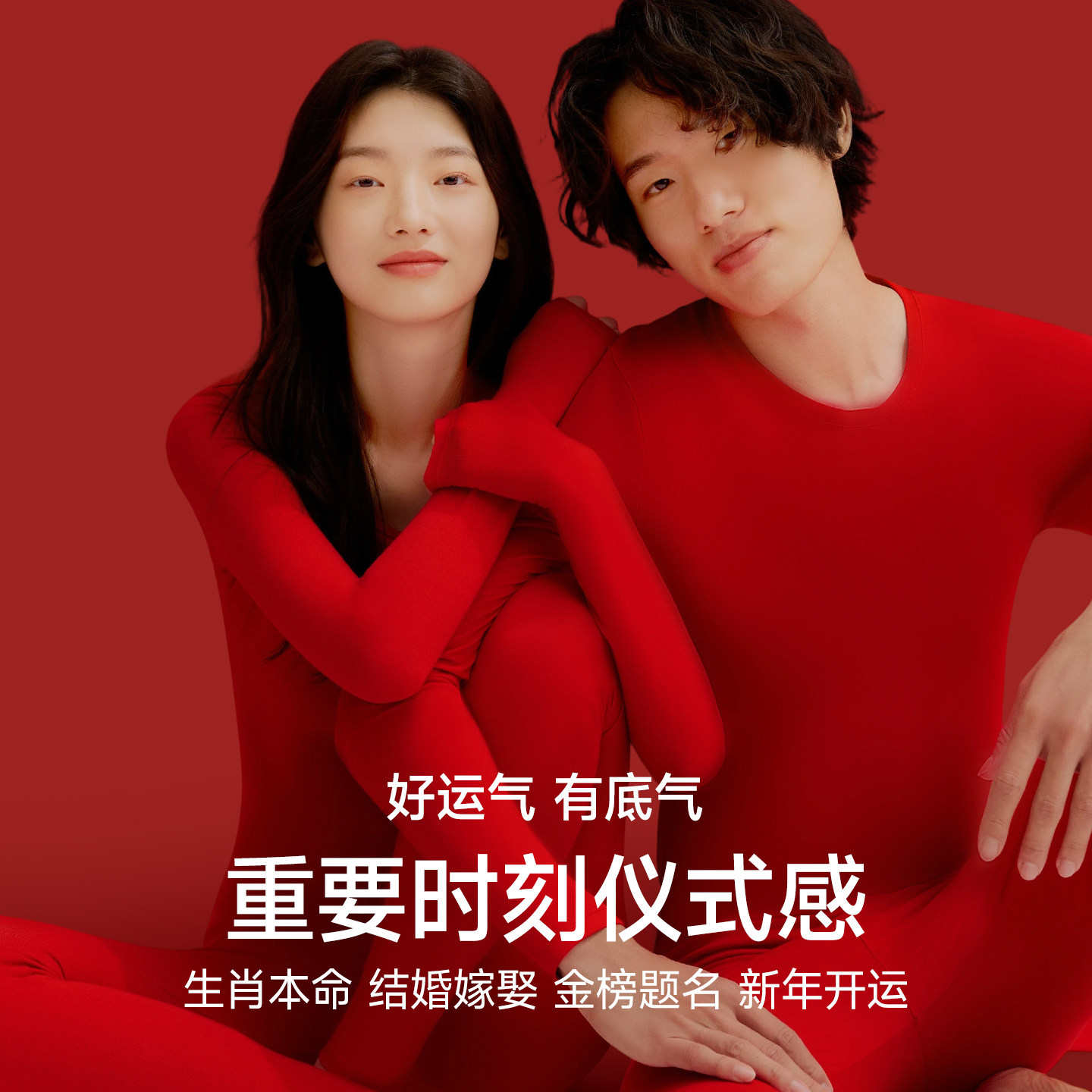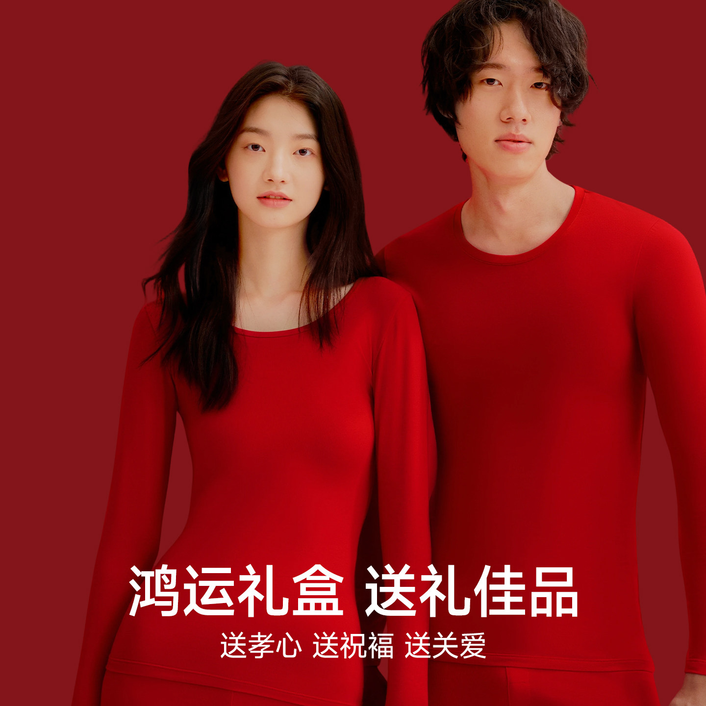 2026马年本命年衣服老年人女士男款红色秋衣秋裤套装保暖内衣礼盒