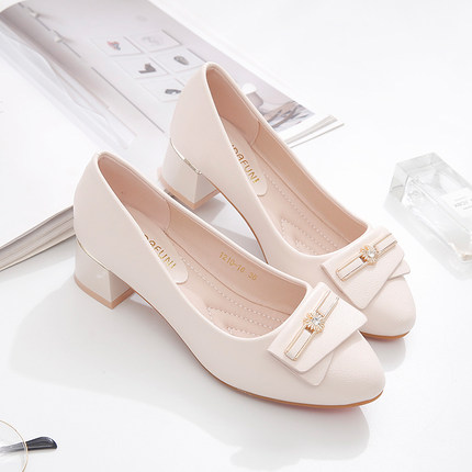 粗跟单鞋女2026春季新款豆豆鞋软底防滑浅口妈妈鞋中跟百搭工作鞋