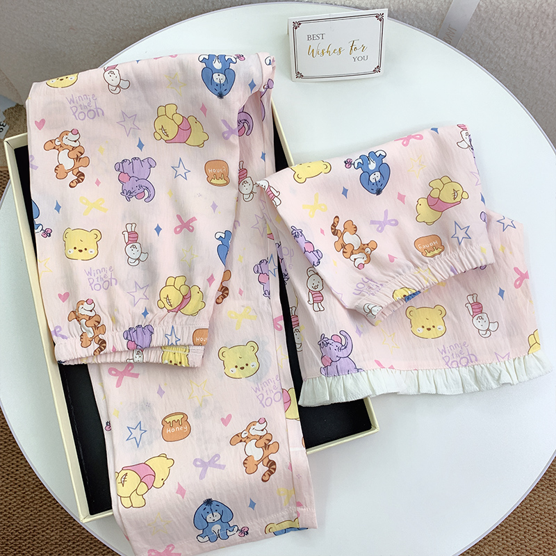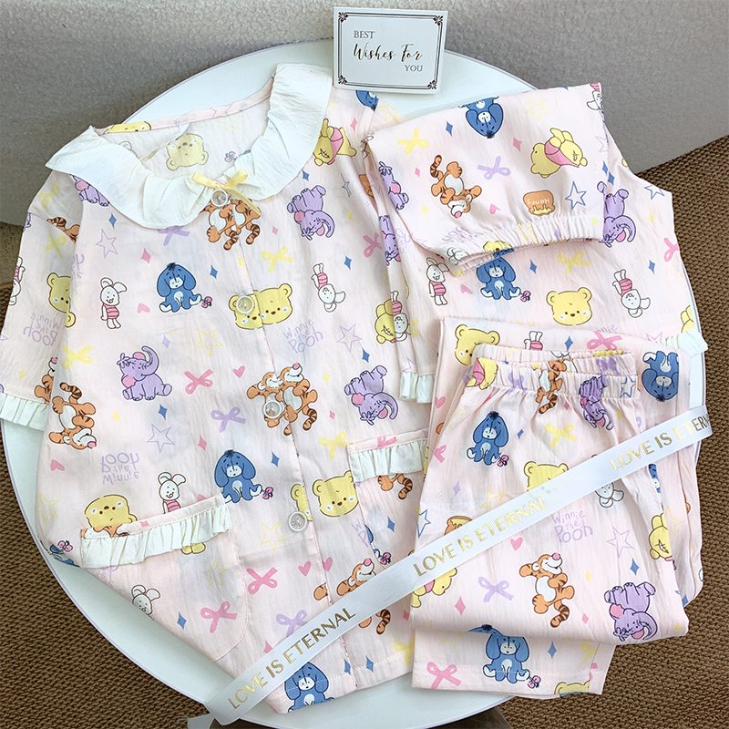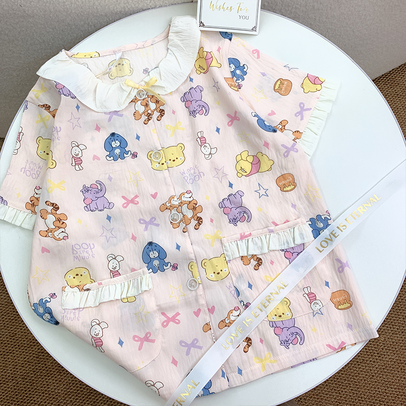 女童纯棉睡衣三件套夏季儿童短袖女孩夏款大童家居空调服2025新款