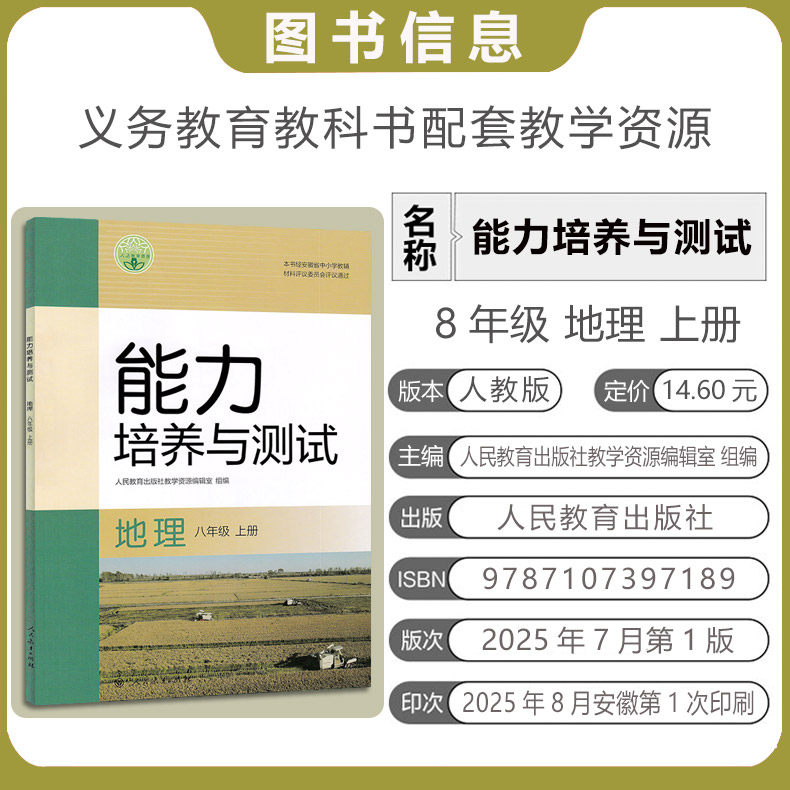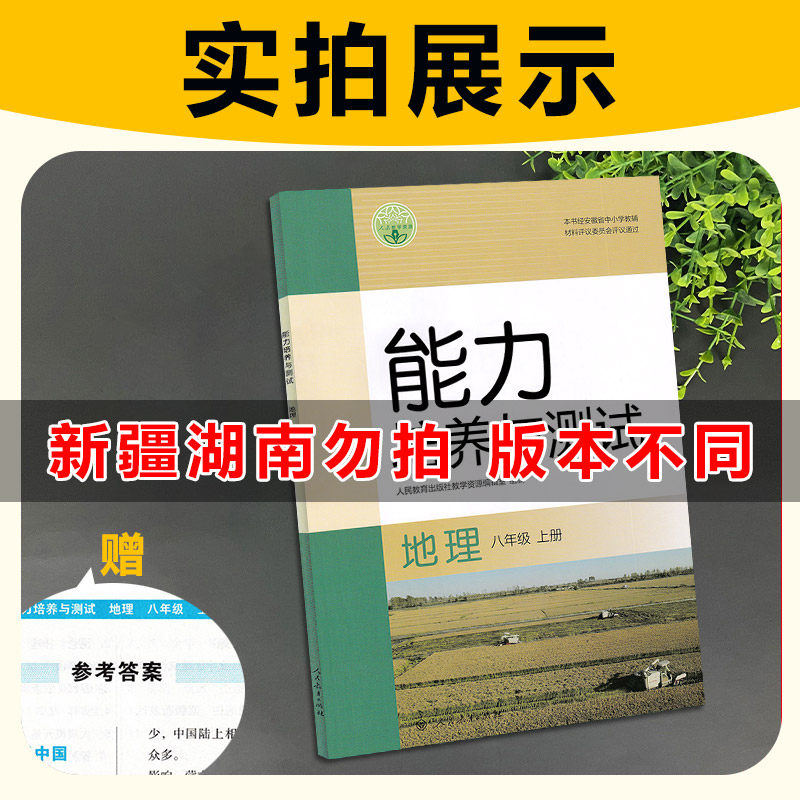 2025秋版 能力培养与测试八8年级上册地理人教版RJ 初中二2年级上册地理人教版 人民教育出版社