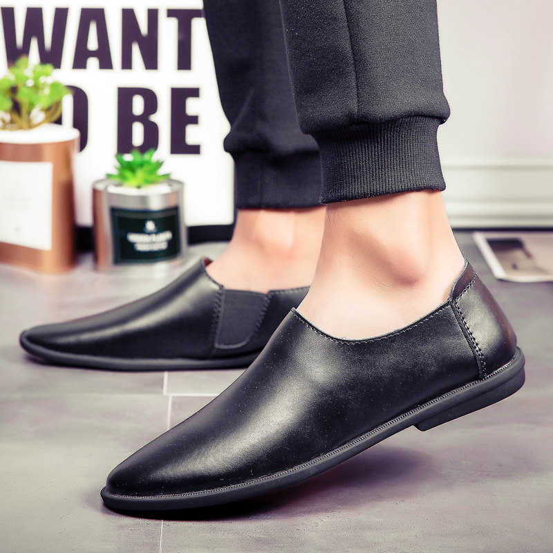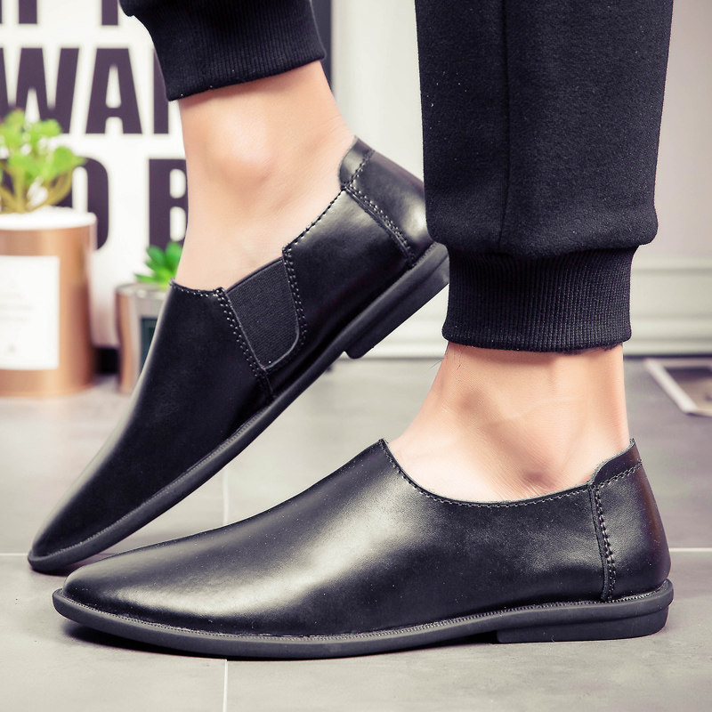 尖头休闲男皮鞋2025新款轻便软低真皮小码时尚潮流一脚蹬豆豆鞋男