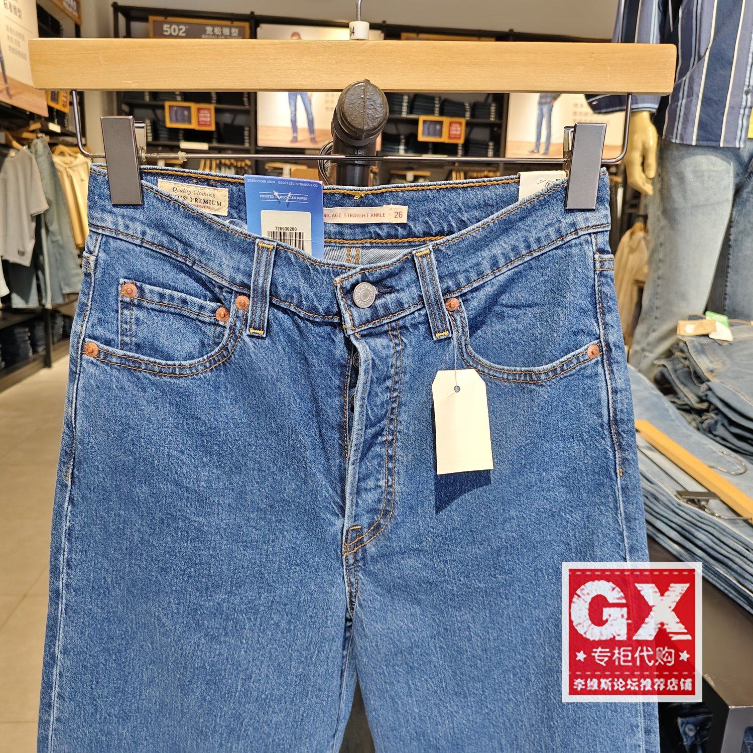 Levis李维斯正品女士休闲夏季薄款纽扣高腰直筒牛仔裤72693-0200