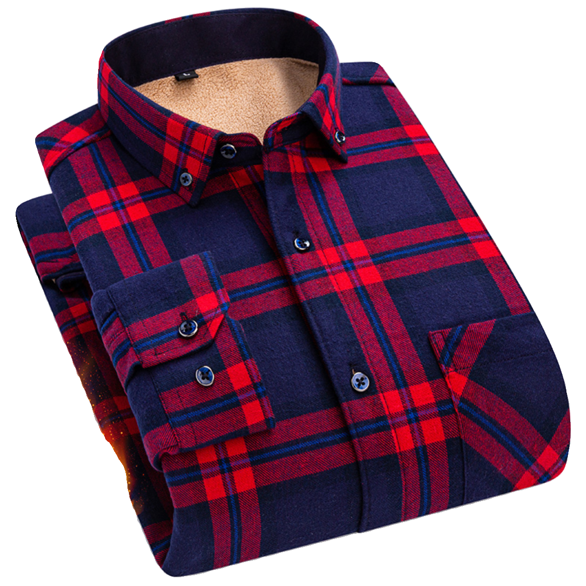 方领长袖羊羔绒加绒加绒衬衫