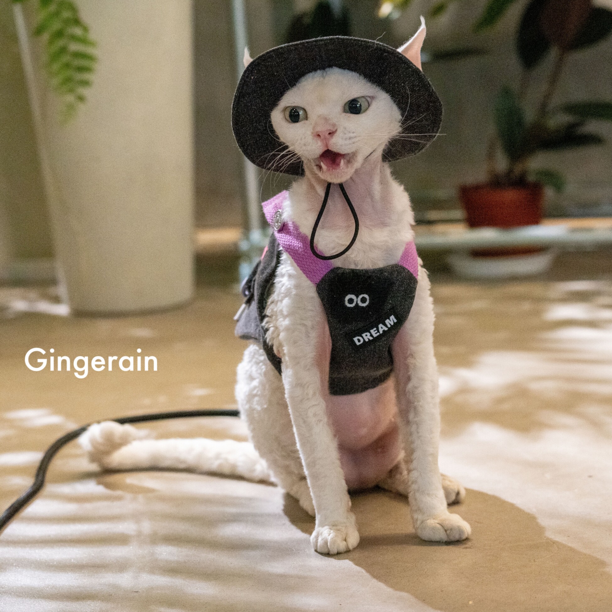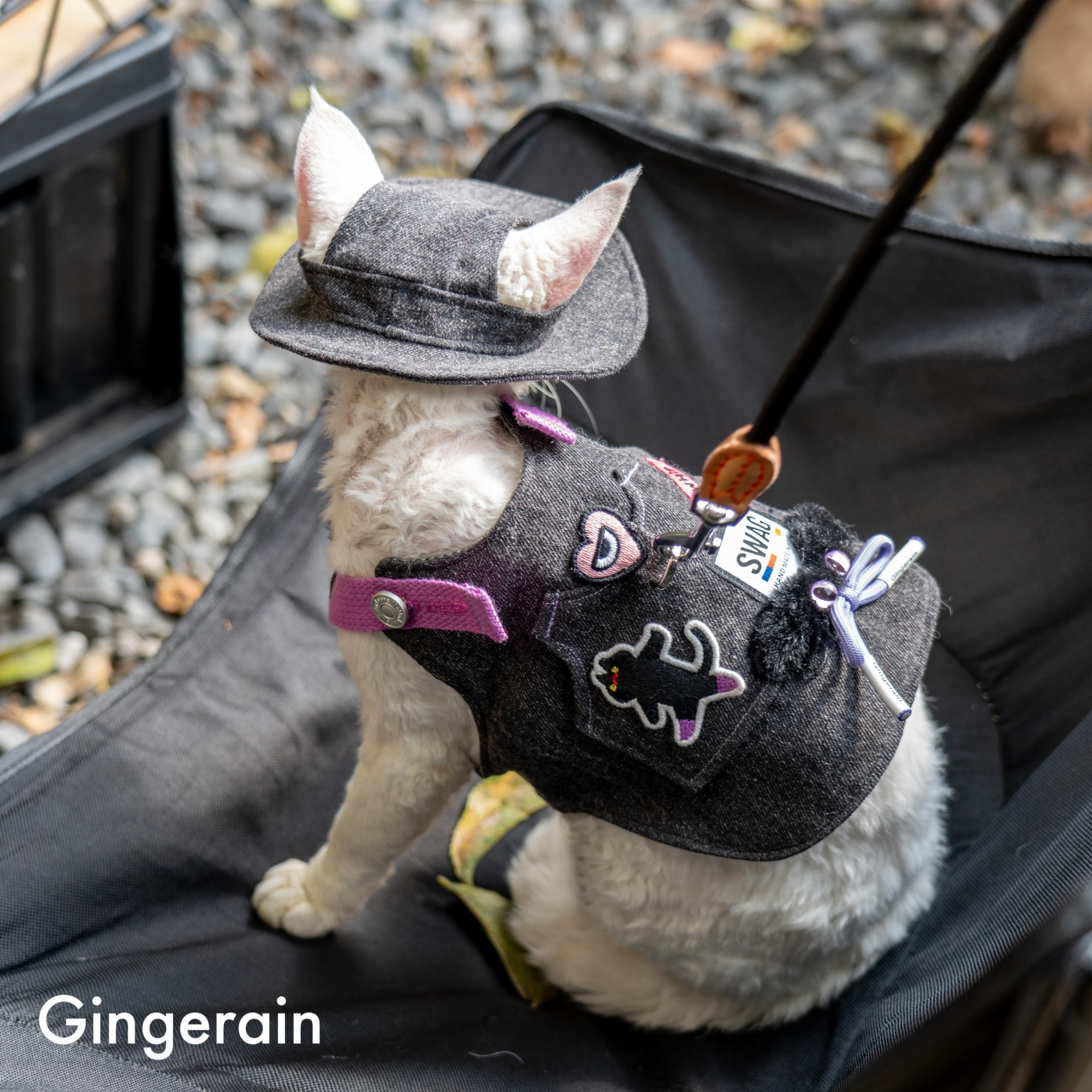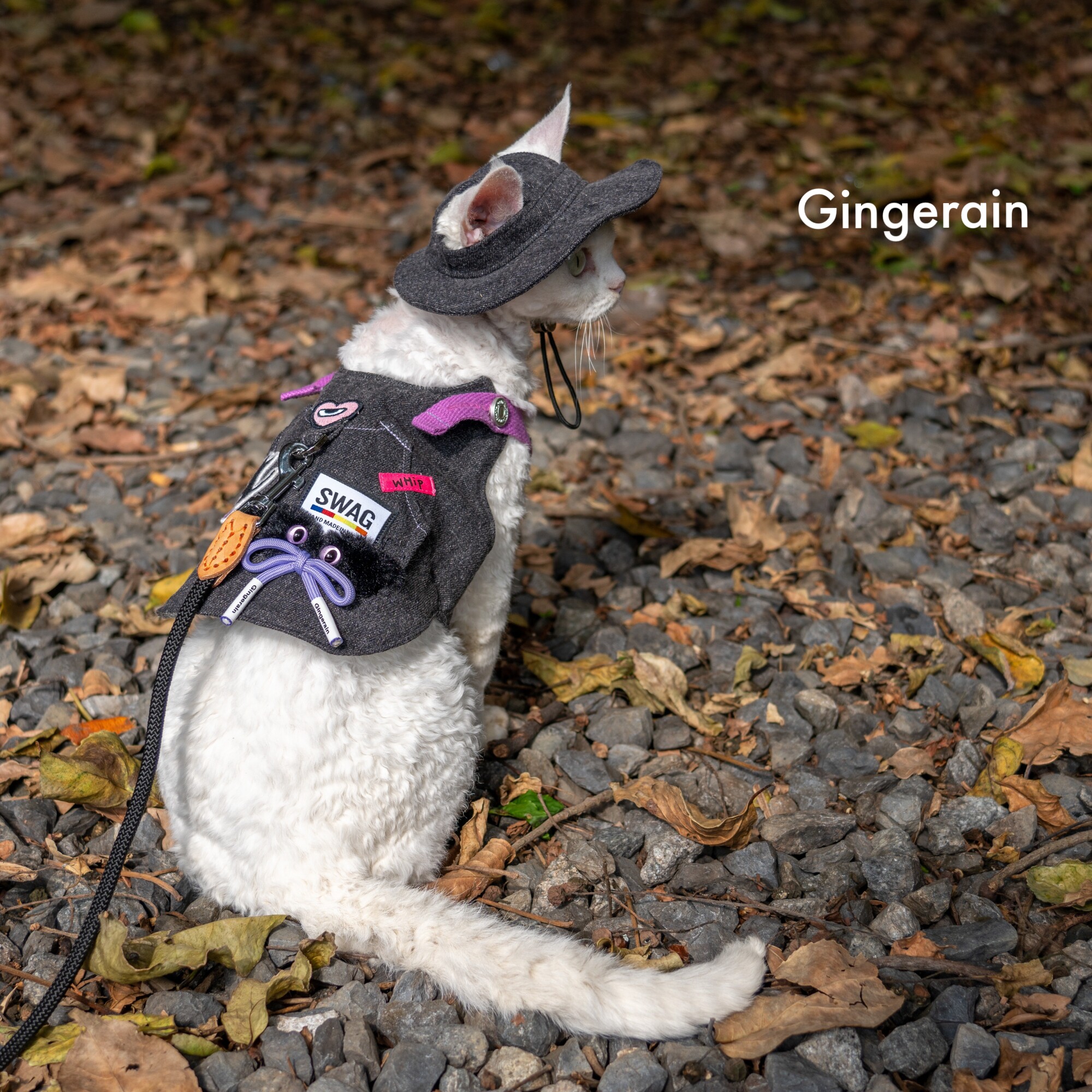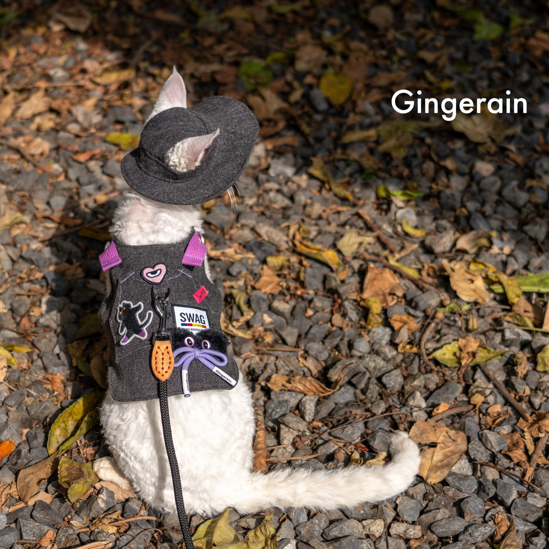 GINGERAIN 露营户外风牛仔遛猫胸背带牵引绳德文无毛猫背心