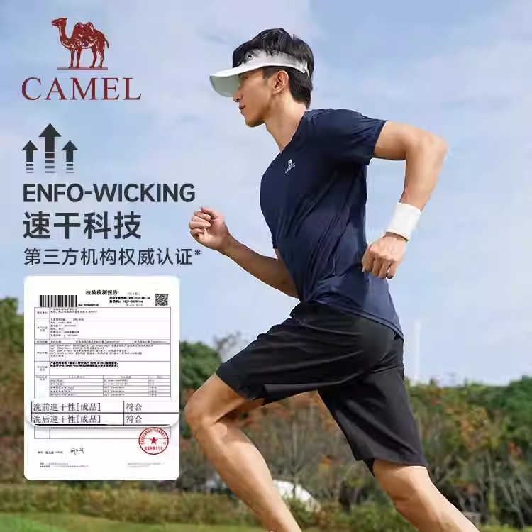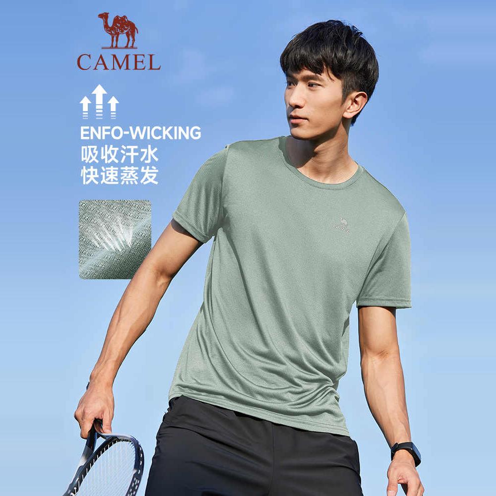 骆驼运动T恤男女士透气健身衣跑步体恤宽松速干衣圆领短袖上衣夏