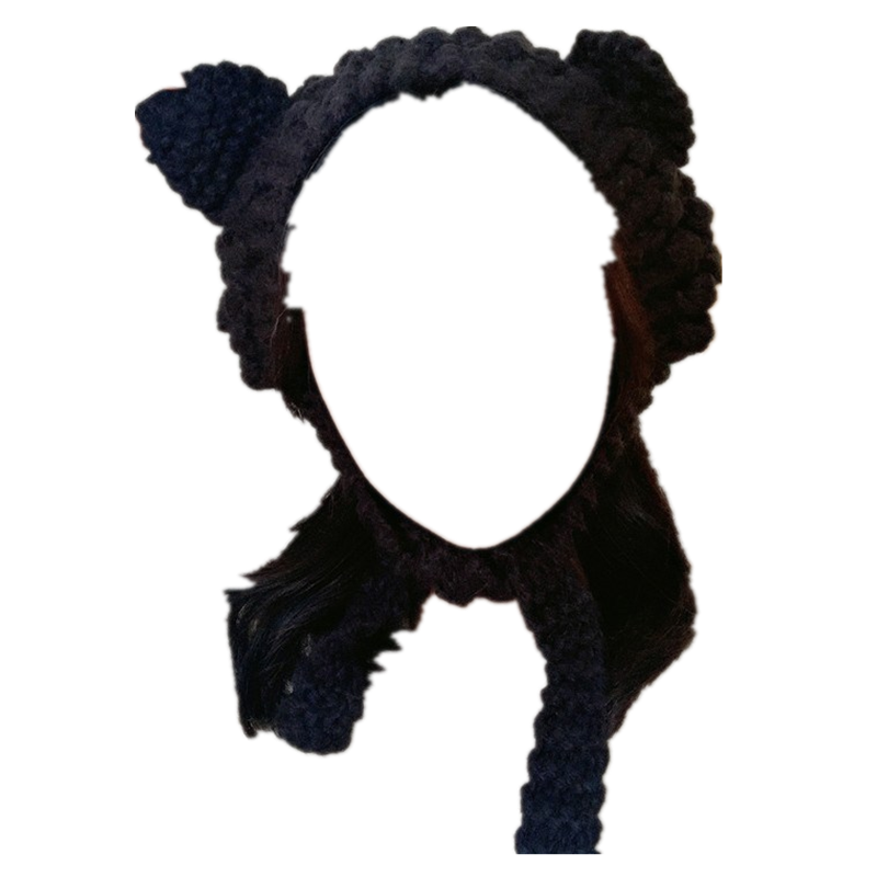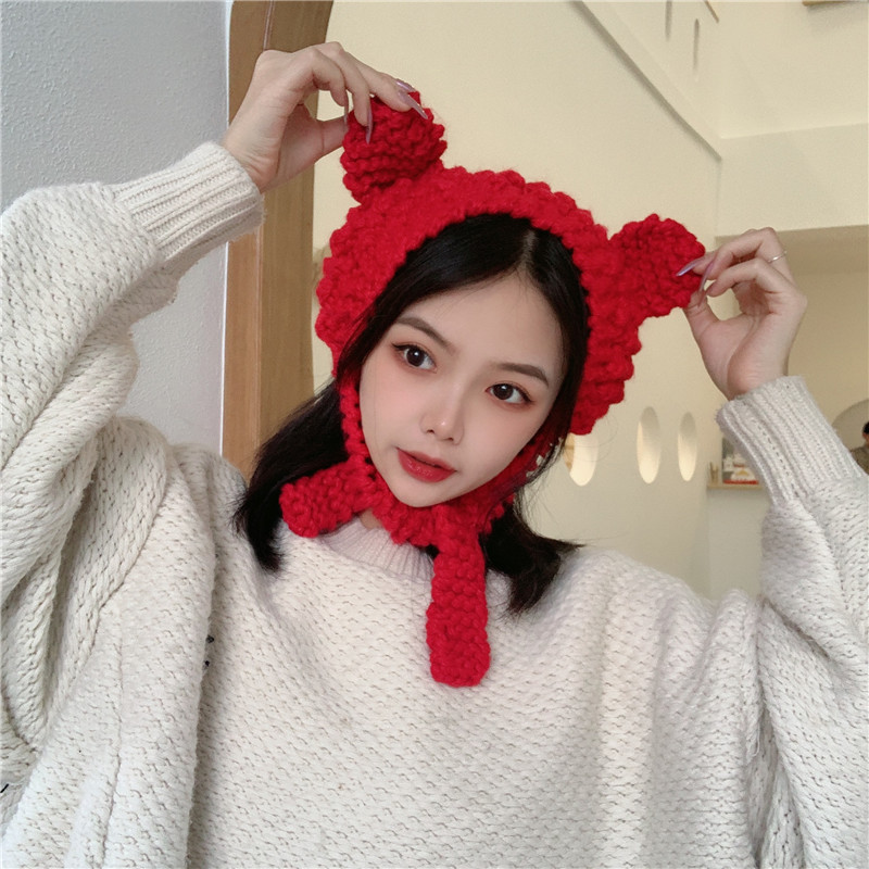 日系小熊针织毛线帽女秋冬天百搭可爱韩版头饰冬季头套帽子护耳罩
