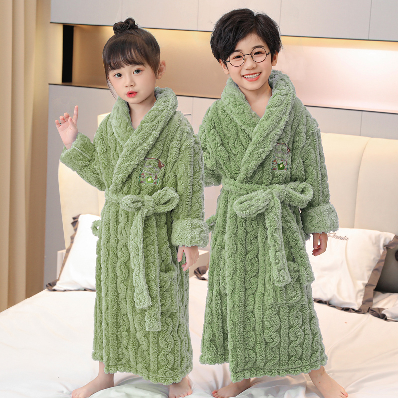 2024年新款珊瑚绒睡袍男童秋冬加厚加绒法兰绒睡衣女童冬天家居服