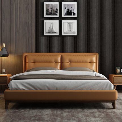 极简北欧皮床现代简约主卧床1.8米小户型轻奢皮艺床1.5米双人床