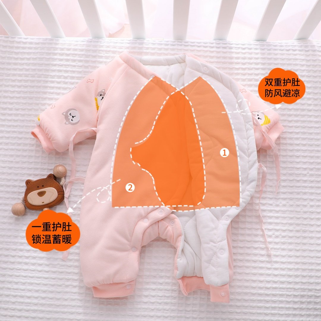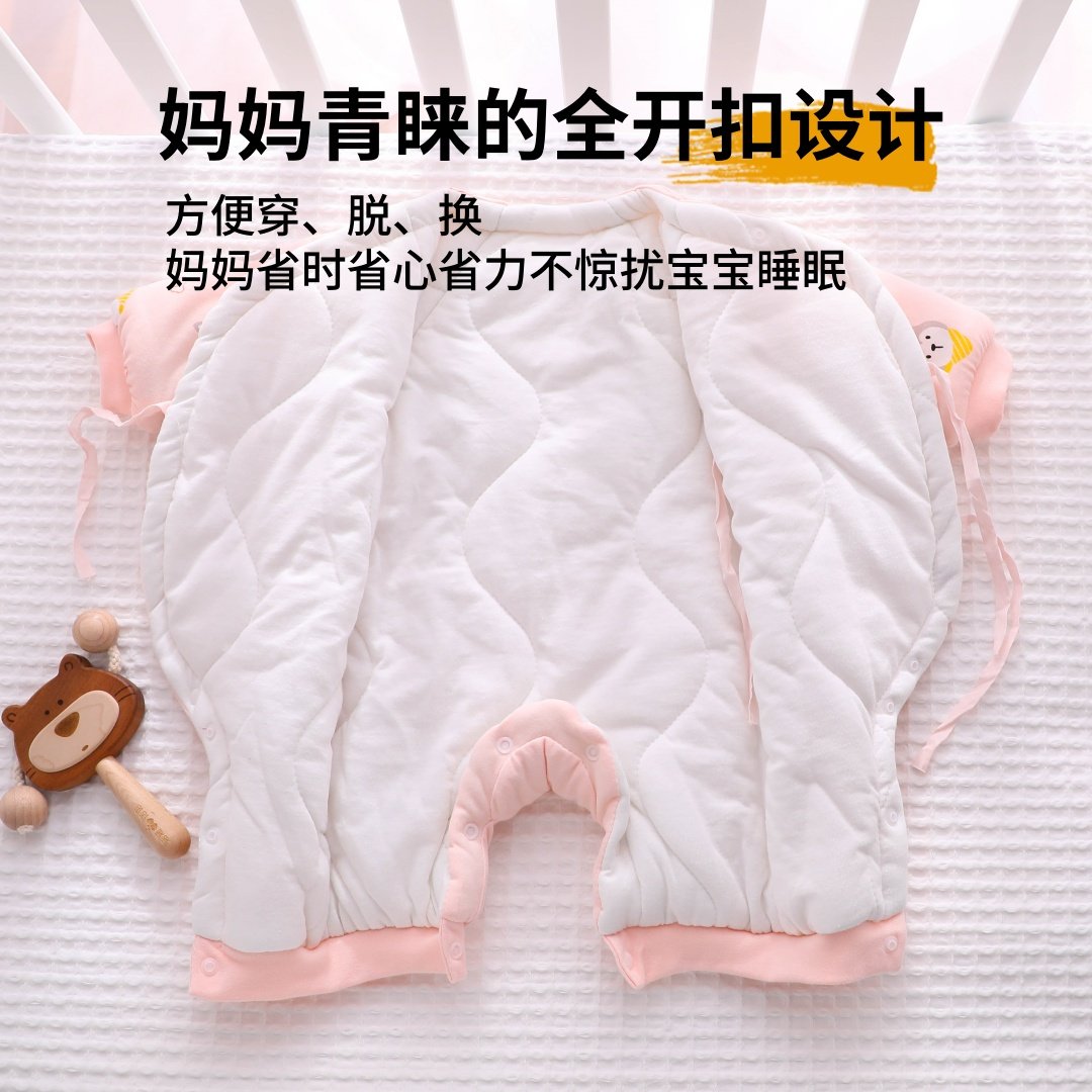 婴儿夹棉连体衣加厚保暖初生宝宝冬季偏襟和尚睡衣52码59纯棉衣服