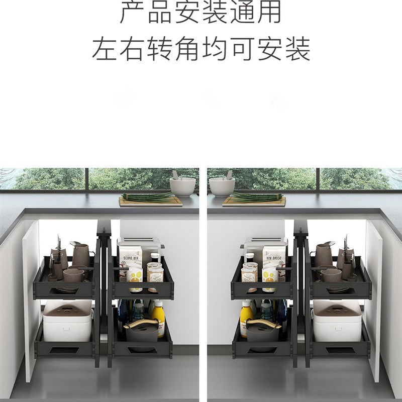 凯斯宝玛全铝合金开门式全开小怪物转角篮收纳地橱柜转角抽屉拉篮