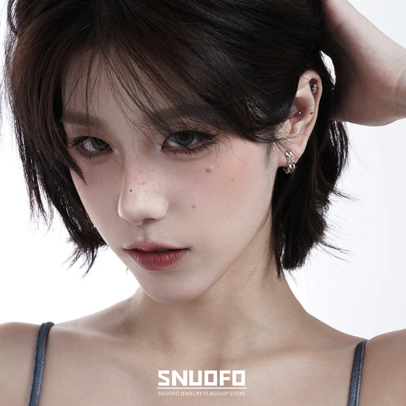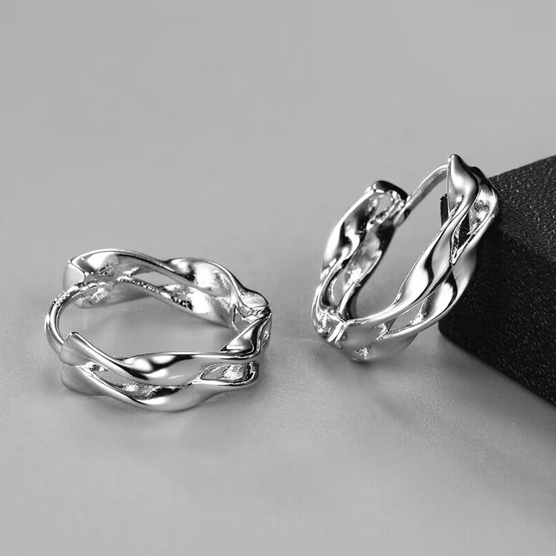 莫比乌斯耳环男士独特素圈耳扣美式纯银耳钉小众简约耳圈潮流耳饰