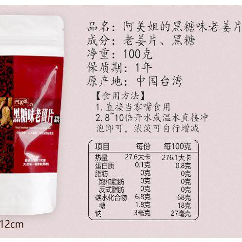张钧甯推荐小红婶儿同款台湾阿美姐黑糖味老姜片手作脆片冲泡防寒