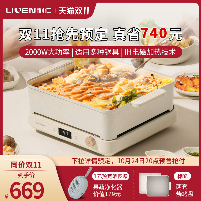 利仁IH多功能料理锅聚嗨煎烤盘家用电烤锅火锅烧烤一体烤肉电磁炉