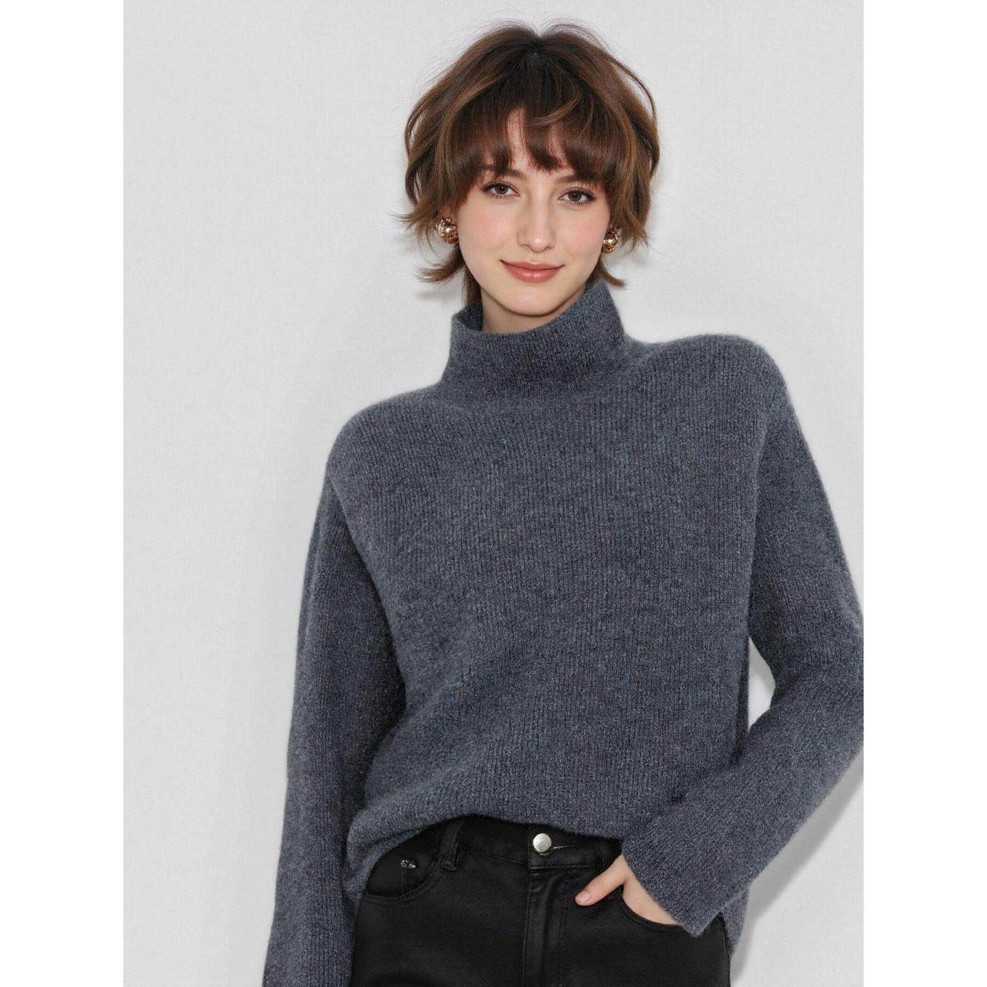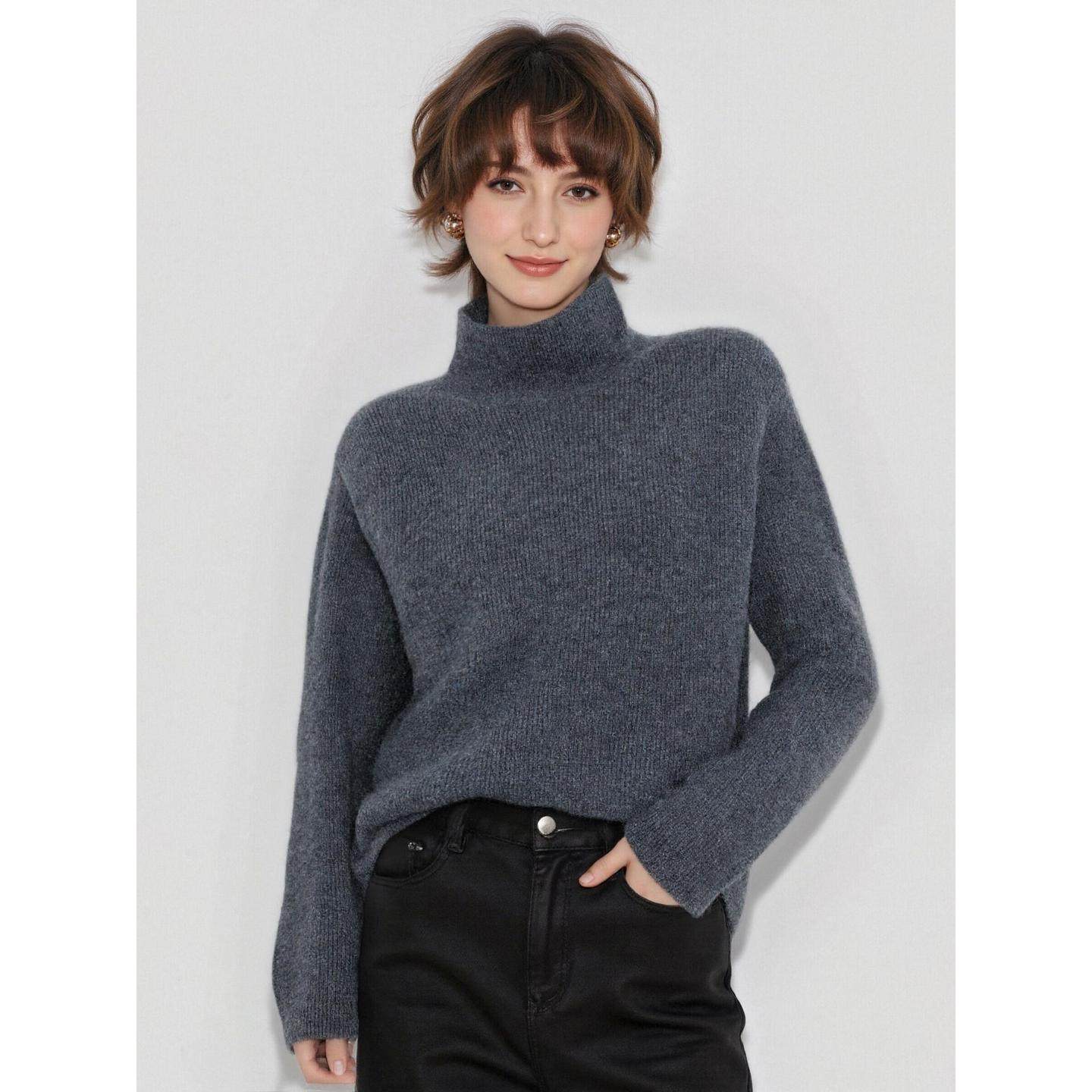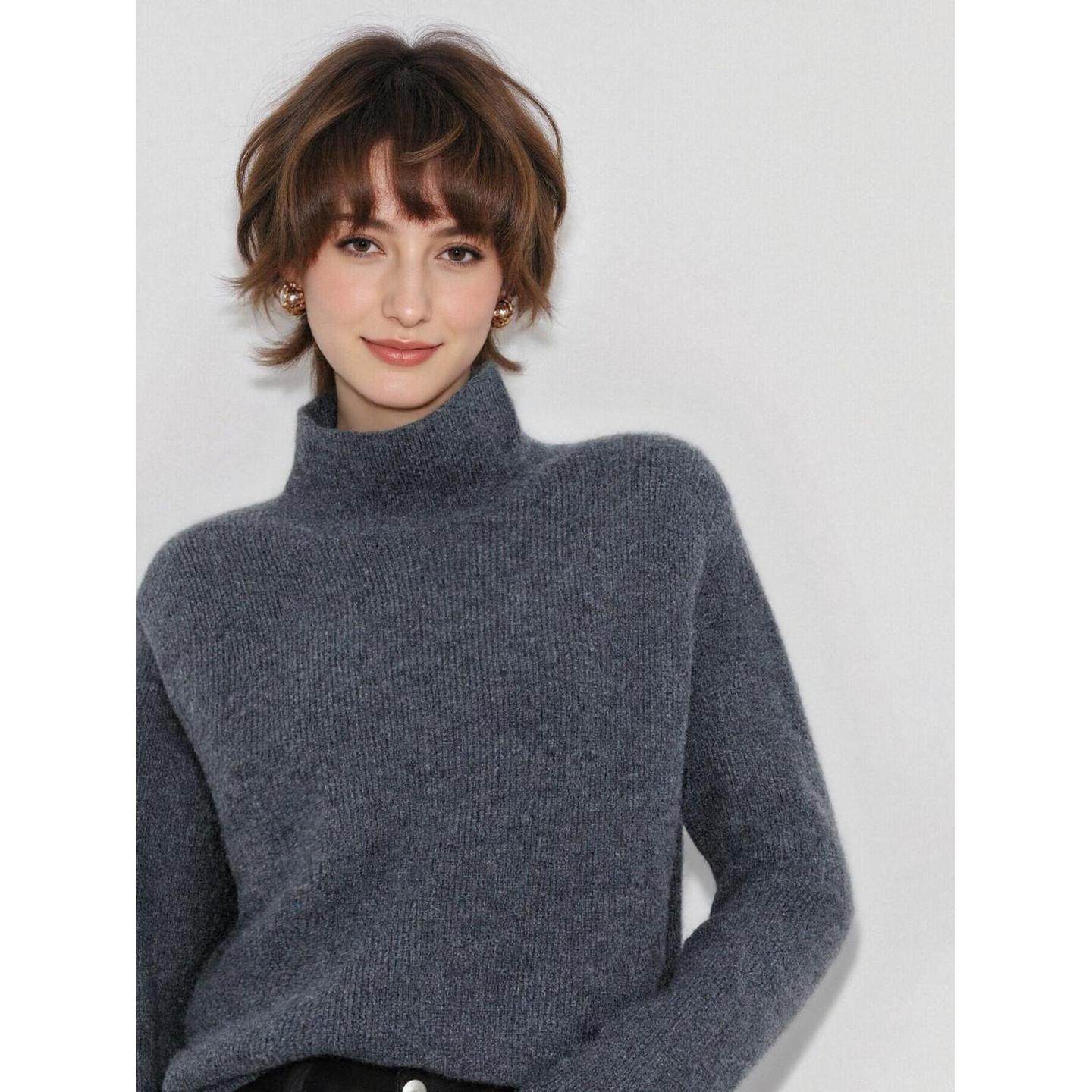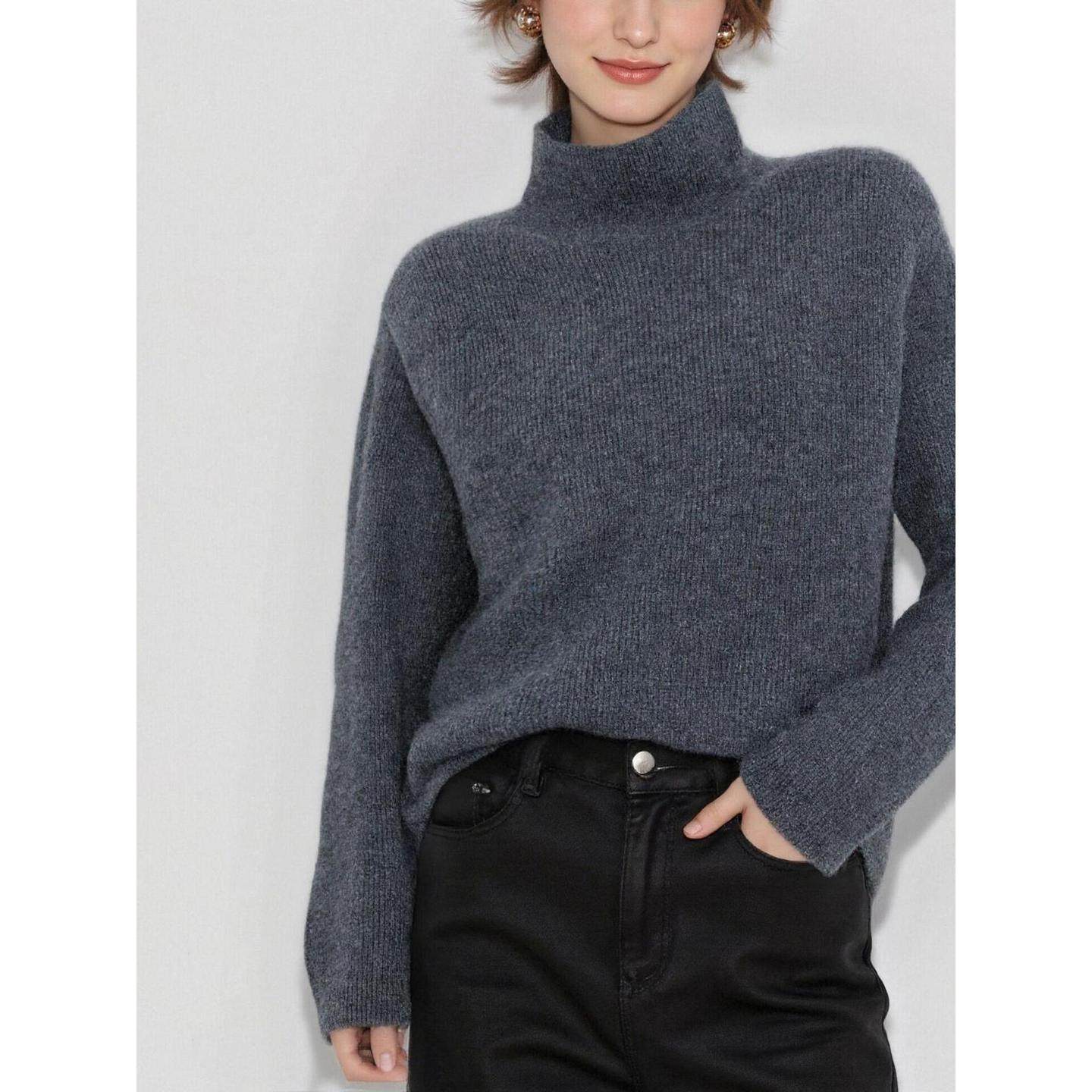 Basic House/百家好100%羊毛深灰色高领毛衣女冬季加厚针织打底衫