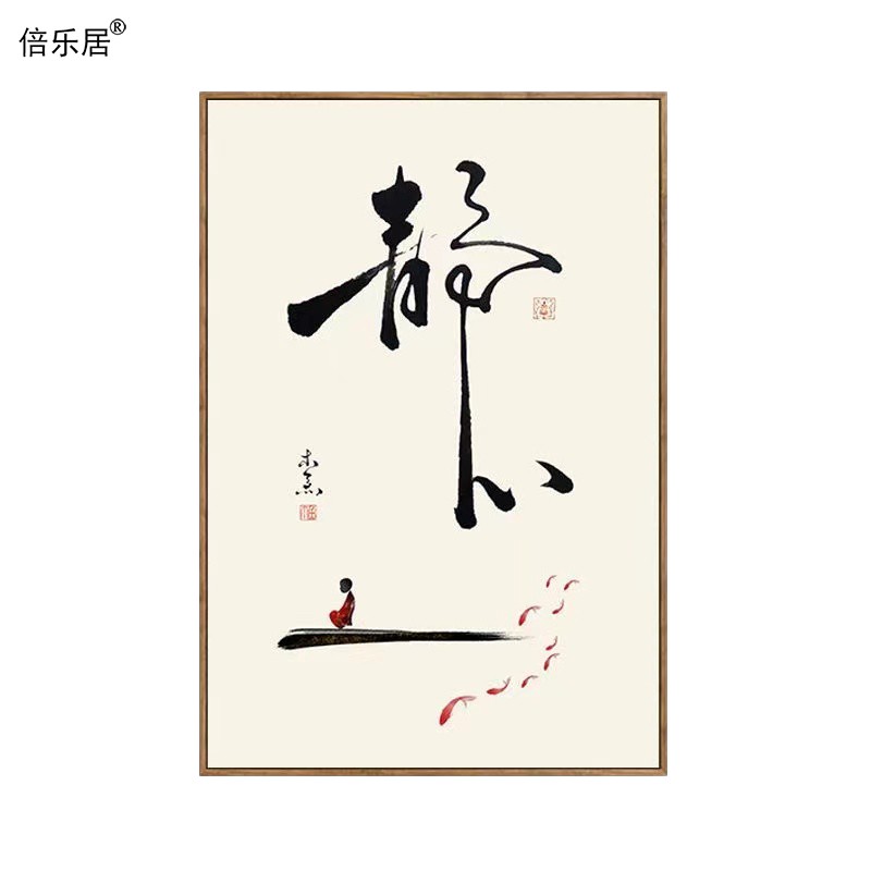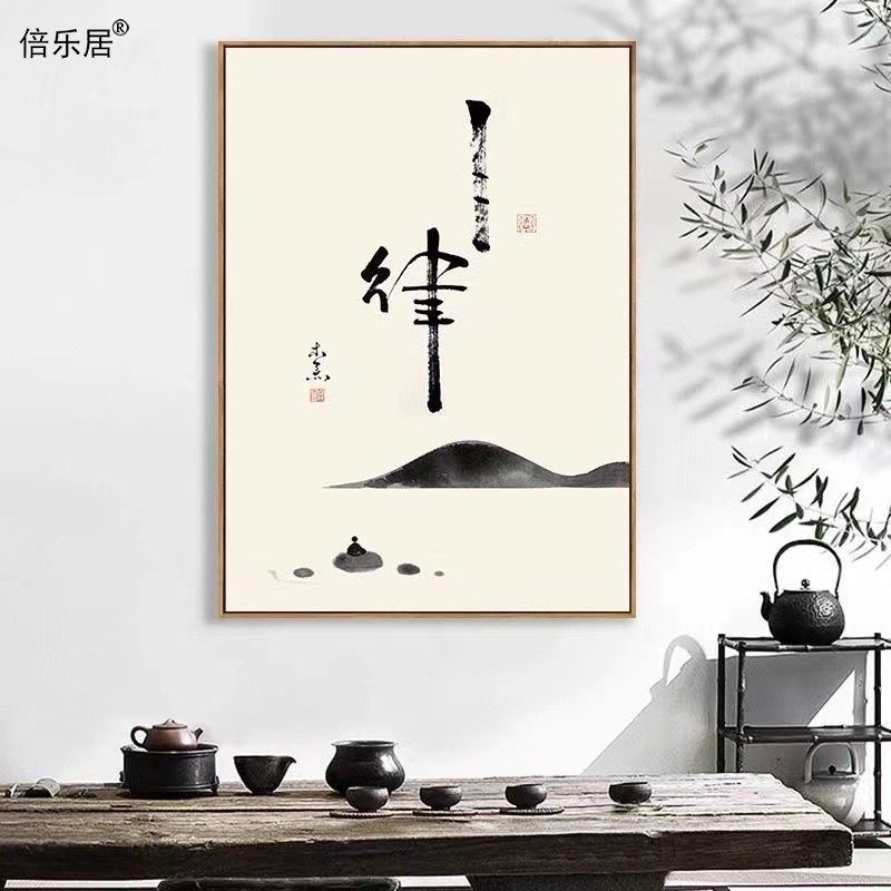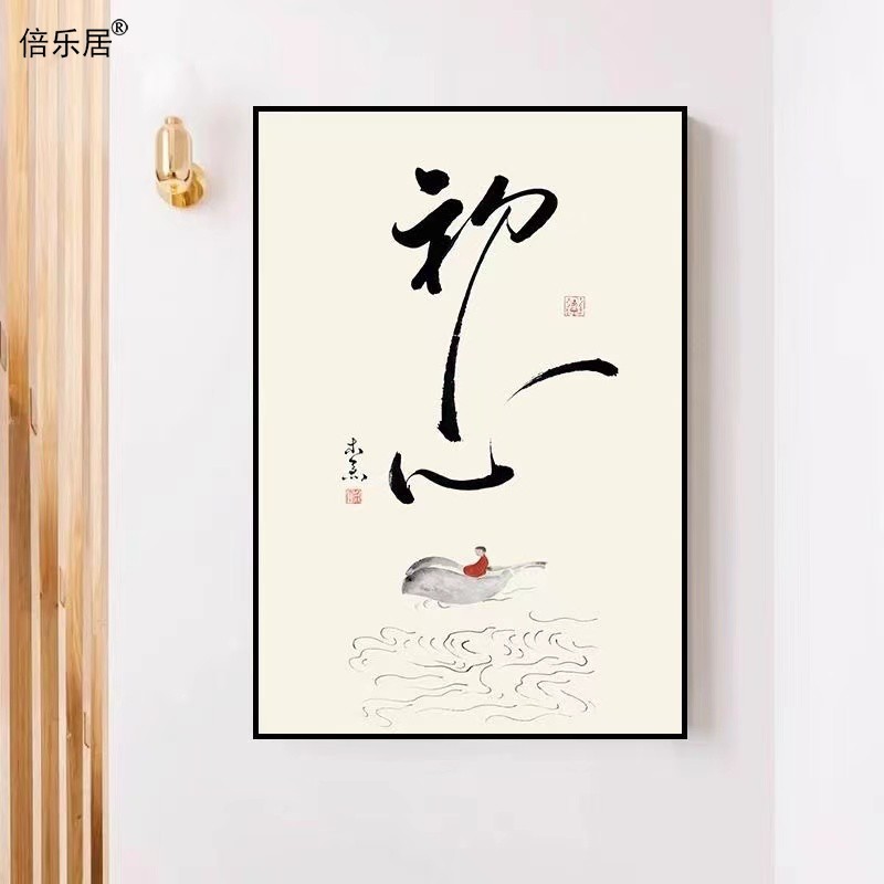 舍得静心壁画自律初心装饰画茶室挂画禅意新中式客厅墙画书法字画