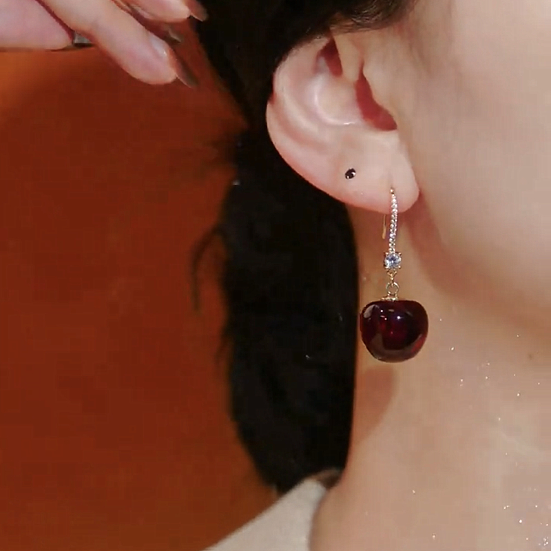 2025新款潮个性红色樱桃银针车厘子耳环轻奢高级感耳勾气质耳饰女