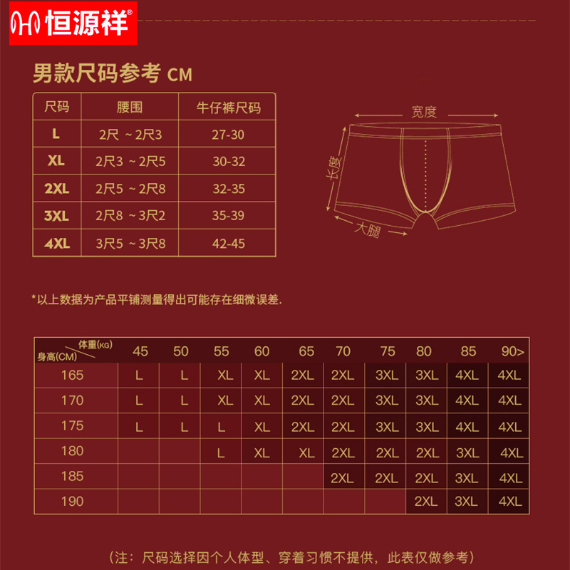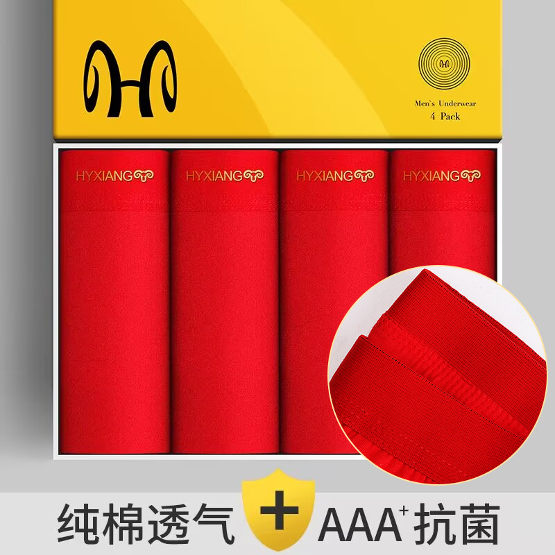 恒源祥大码红内裤男本命年蛇年纯棉平角裤头红色四角结婚全棉内衣