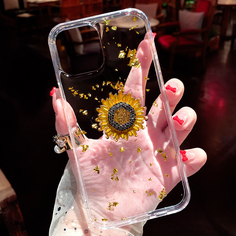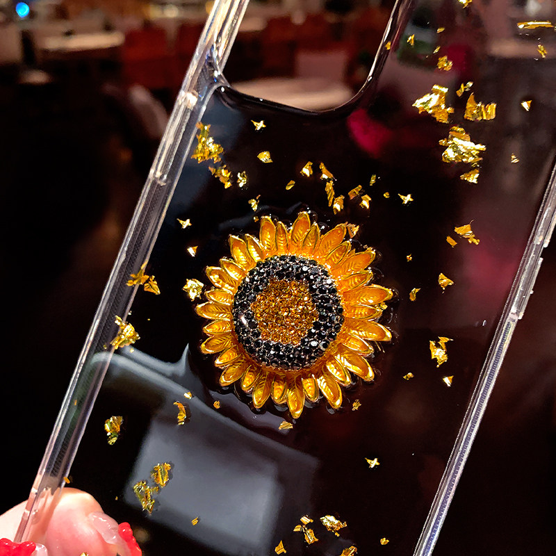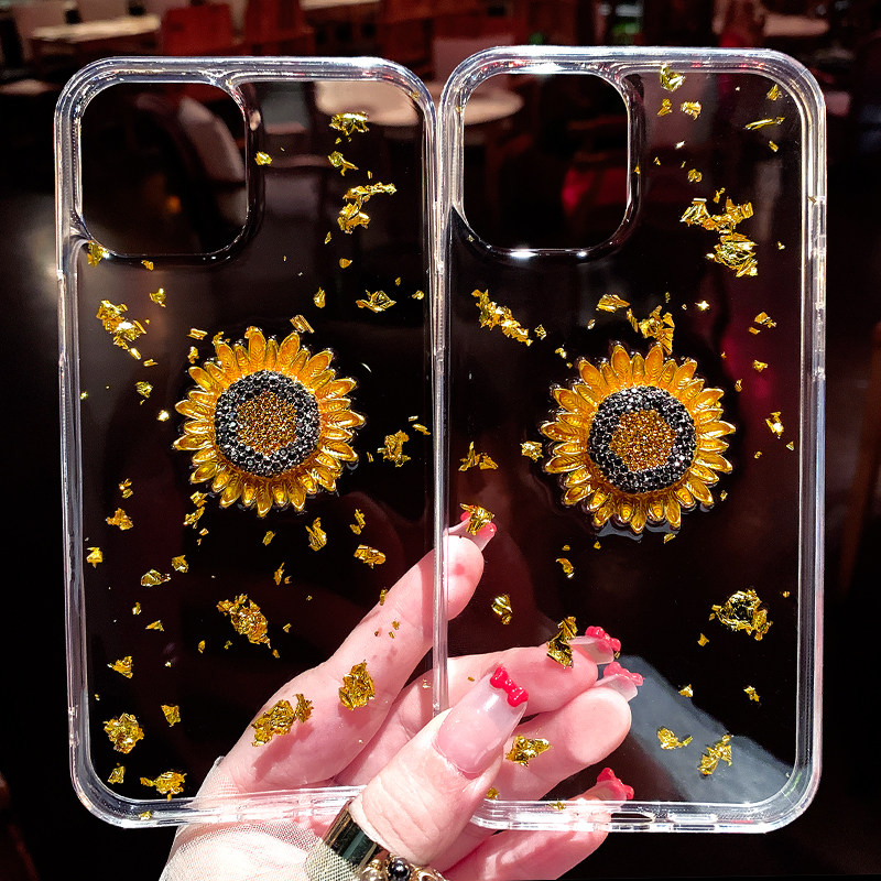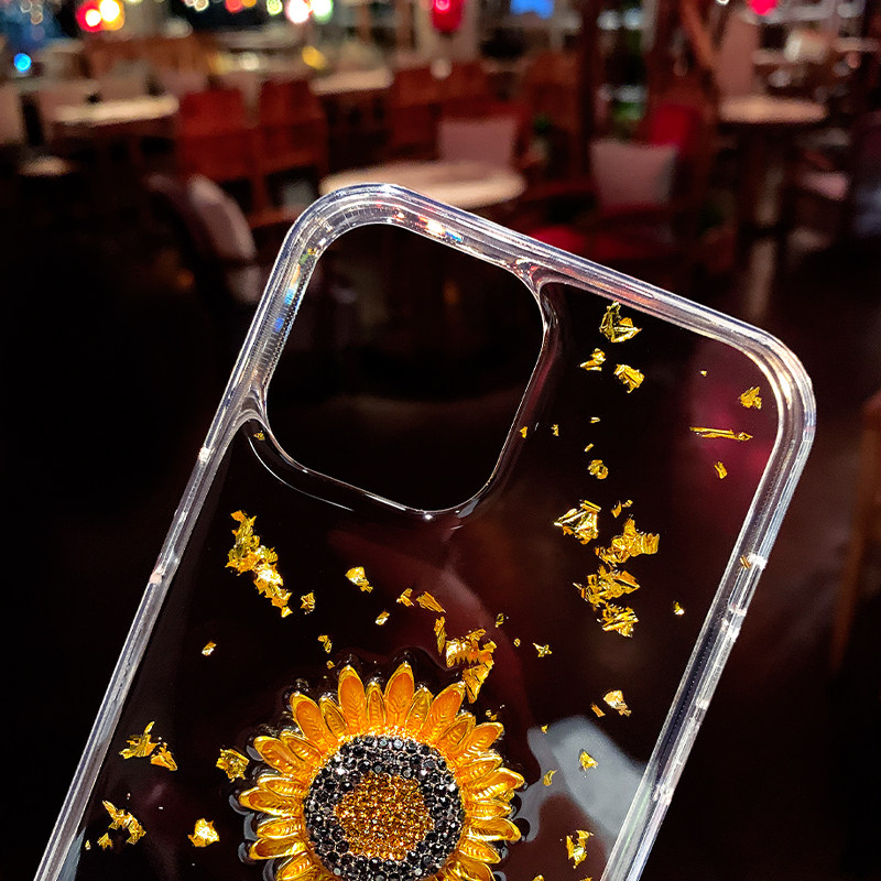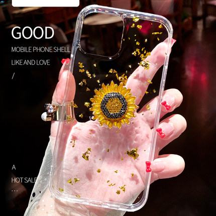 水钻向日葵苹果17新款iphone16promax原创15手机壳14滴胶13金箔12防摔8plus透明xs保护套mini硅胶7奢华se适用